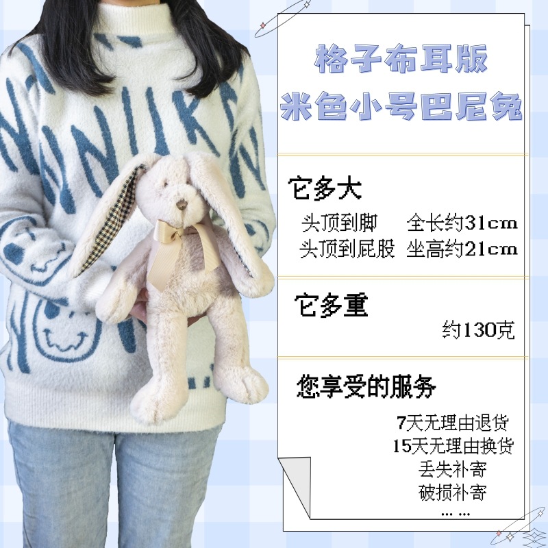 • 격자 무늬 패브릭 버전 바니 토끼 스몰 사이즈 길이 31cm