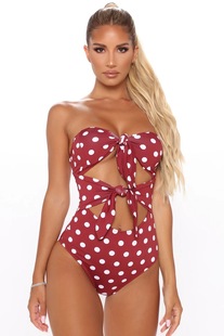 2021新款欧美比基尼连体泳衣复古波点外贸速卖通亚马逊泳装bikini