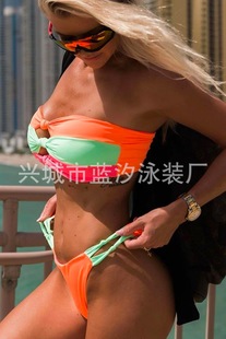 2021新款欧美比基尼外贸 抹胸拼色高腰比基尼 性感分体式泳衣泳装