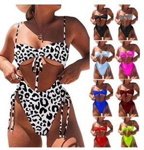 2021新款豹纹蛇皮比基尼泳衣高腰分体泳衣 速卖通跨境批发 bikini