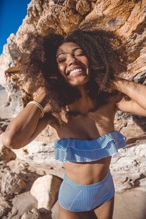 2021跨境分体泳衣比基尼荷叶边高腰条纹欧美外贸泳装速卖通亚马逊