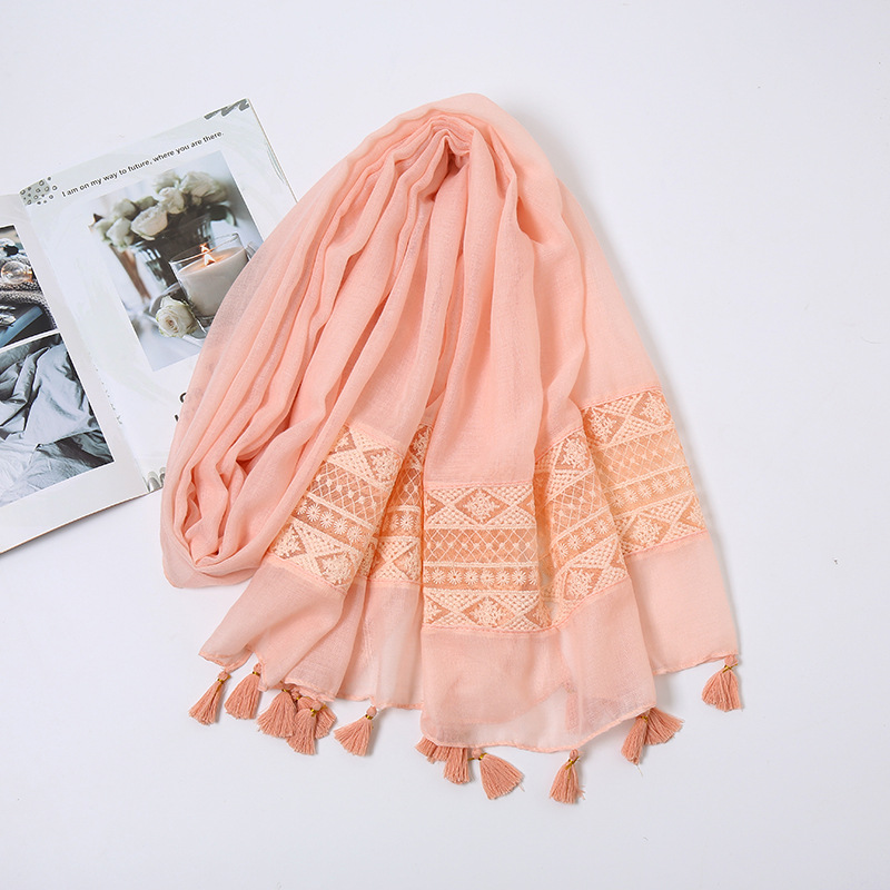 의류 액세서리 가을과 겨울 두꺼운 타이 다이 여성용 레이스 스카프 우아한 술 코튼 린넨 대형 숄 BS529