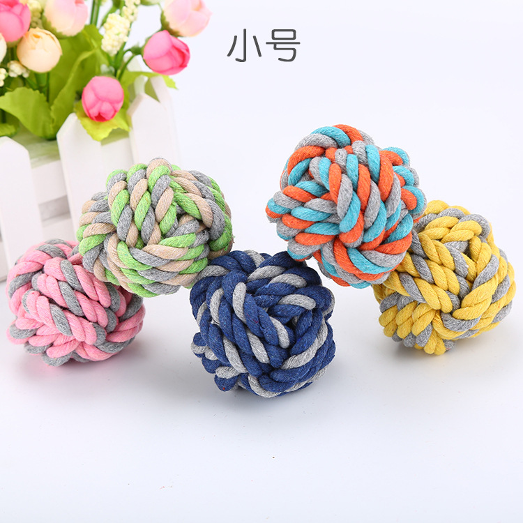 공장 재고 도매 애완 동물 장난감 애완 동물 용품 손 넥타이 스몰 사이즈 면 로프 공 면 로프 장난감 공 개 장난감스토어 가기