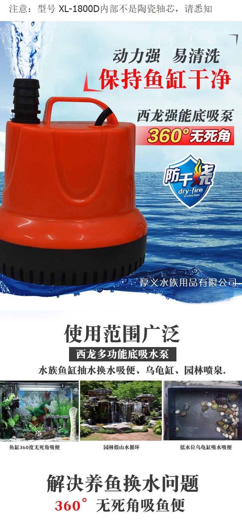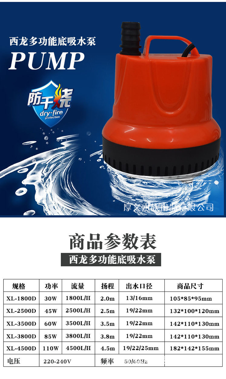 西龙XL-2500D鱼缸龟缸潜水泵静音循环泵鱼缸底吸水吸鱼便器