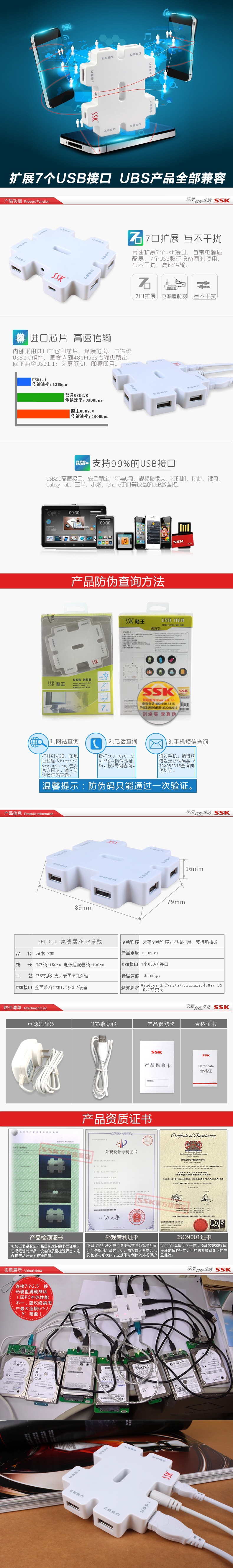 SSK Biao Wang 빌딩 블록 SHU011 USB2.0 분배기 (독립 전원 공급 장치 허브 클러스터 익스텐더 7 포함)