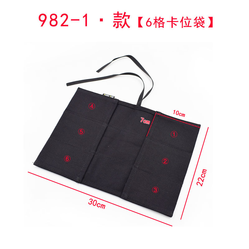 此款式分3个规格 ,规格不同、价格不同。此网页标价均是( 982-1款黑色 6格卡位袋30x22cm)的,欲知其他规格更详细的出厂批发价,请与客服联系索取哦~。