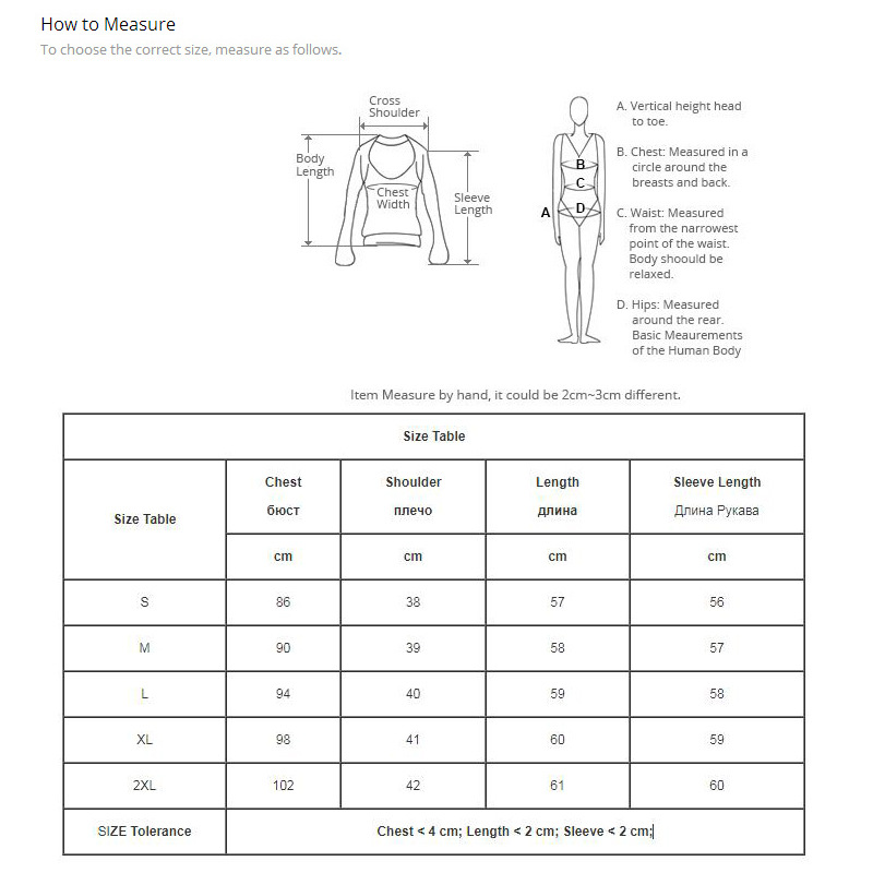长袖尺码: