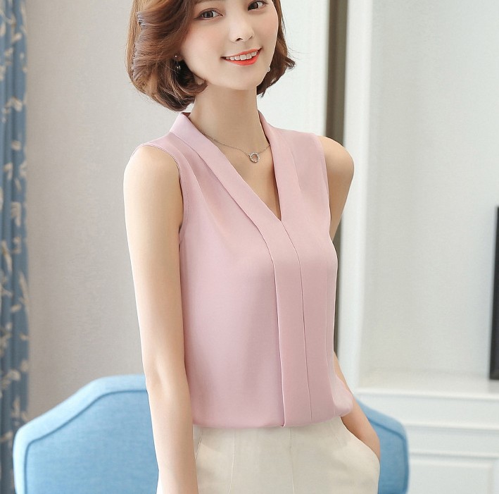 국경 간 공급 AliExpress 이베이 유럽 및 미국 쉬폰 V-넥 민소매 탑 조끼 쉬폰 셔츠 느슨한스토어 가기