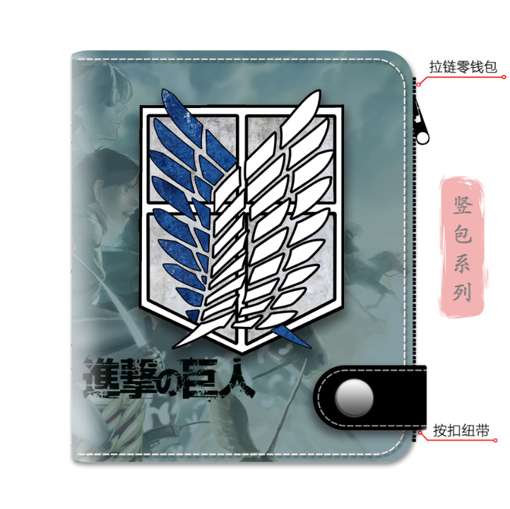 진격의 거인】애니메이션 게임 주변기기 제조사 제품 학생 지갑 지퍼 동전 지갑 카드 지갑