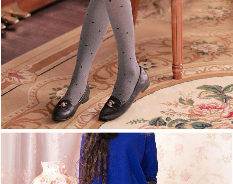 봄과 가을 팬티 스타킹 회색 사랑 활 작은 점 일본 자카드 벨벳 여성용 중간 두꺼운베이스 양말스토어 가기