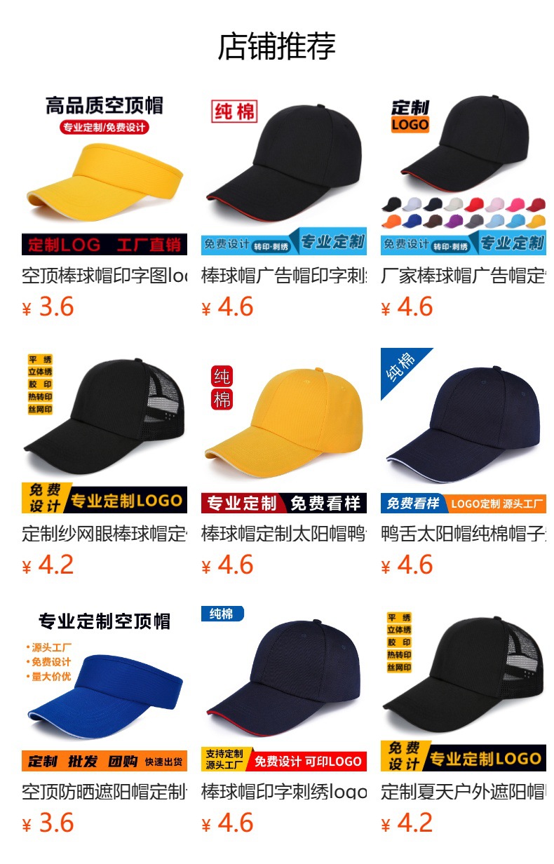 거즈 통기성 차양 야구 모자 맞춤형 남성과 여성의 작업 오리 혀 태양 모자 인쇄 자수 맞춤형 광고 모자스토어 가기