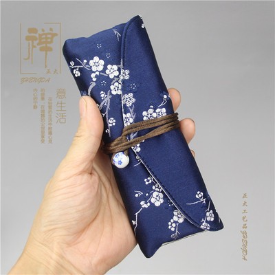 수제 브로케이드 가방 면 및 린넨 고급 번들 포켓 휴대용 문구 연필 가방 카세트 보관 세트 가방