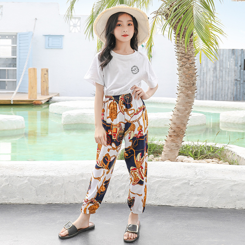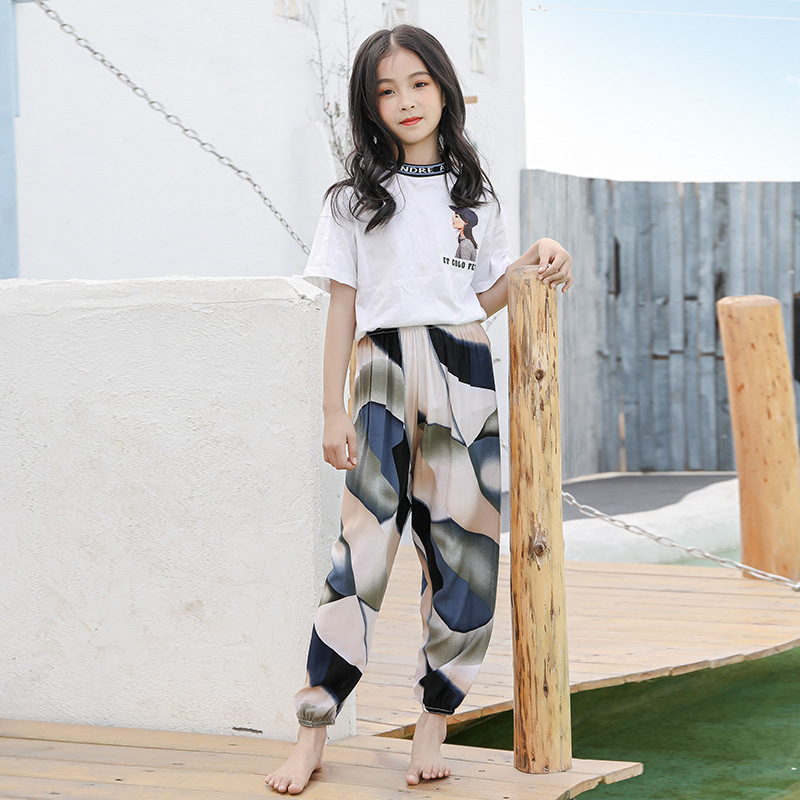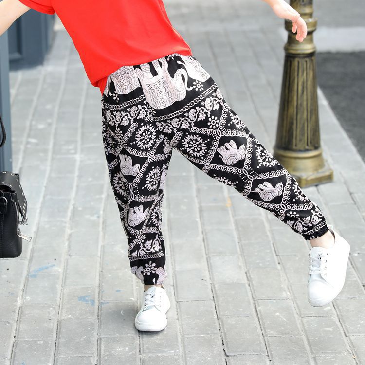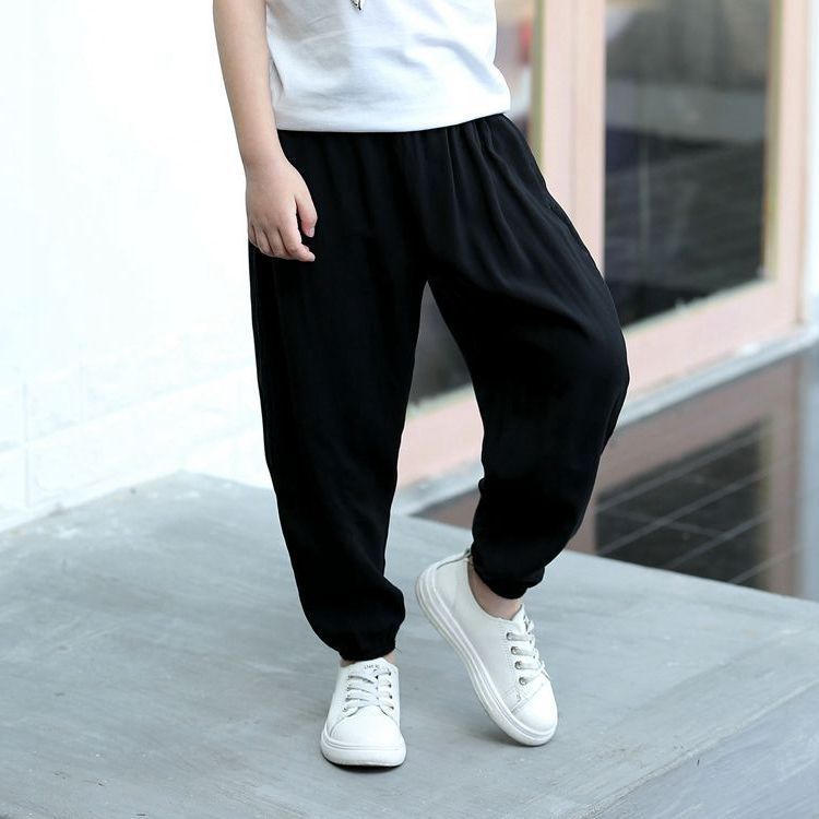 1韩版夏季薄款绵绸九分休闲裤 中小男女童哈伦裤儿童休闲防蚊垮1