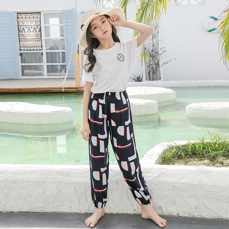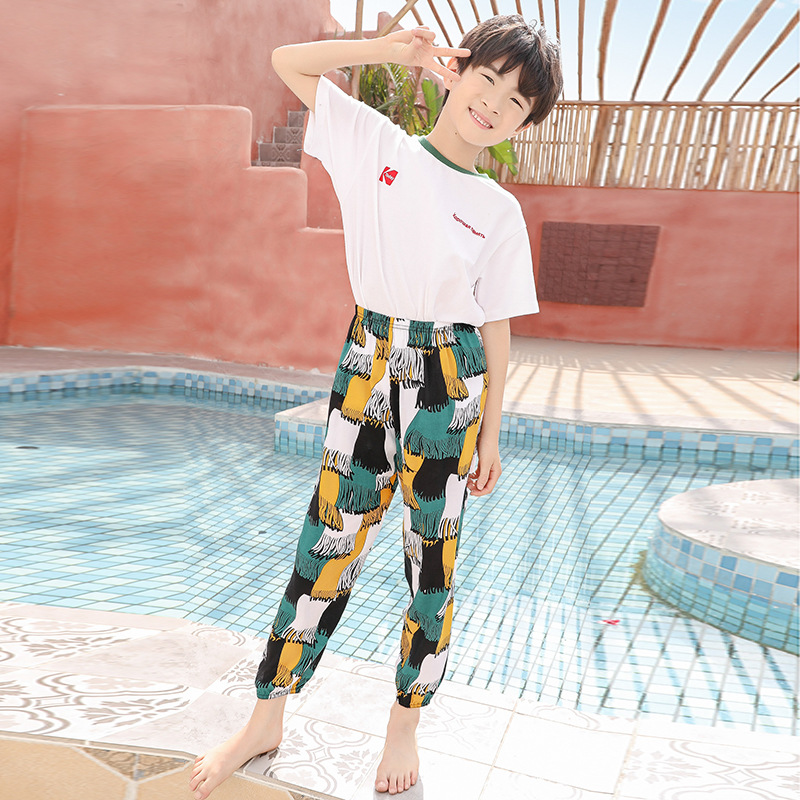 소년과 아기를 위한 한국식 파자마 바지 프린트 블루머 소녀 여름 어린이 모기 방지 바지 얇은 면 실크 느슨한 바지