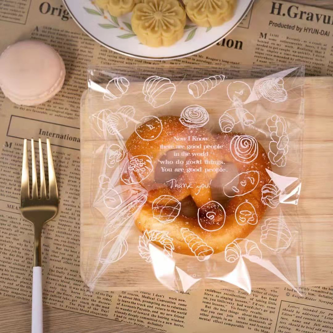 透明白色印花面包袋,图案清晰,干净卫生,是面包包装不错的选择!性价比高,选择实惠,需要选择好包装哦!适合装牛角面包,切片面包,小点心,西点,饼干,用途多多,发挥您的想象吧!