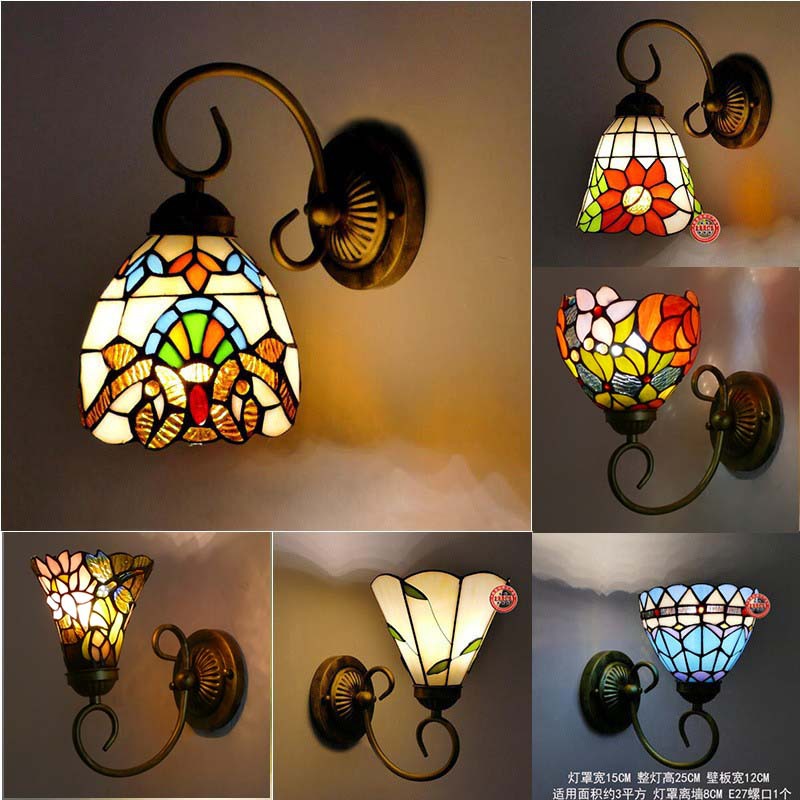 유럽식 복고풍 커피 숍 개인화 된 창조적 인 벽 램프 티파니 청동 침실 침대 옆 램프 복도 발코니