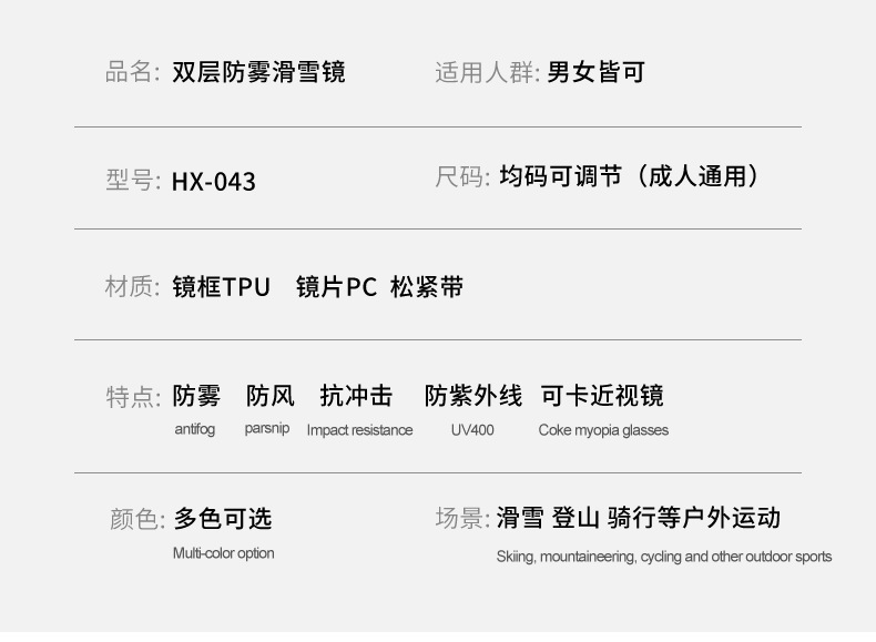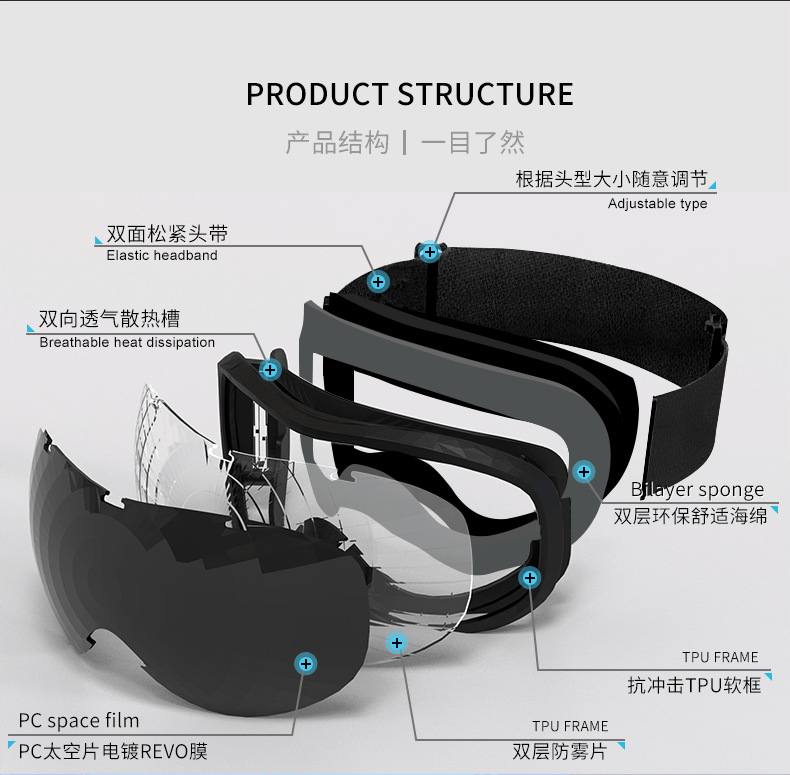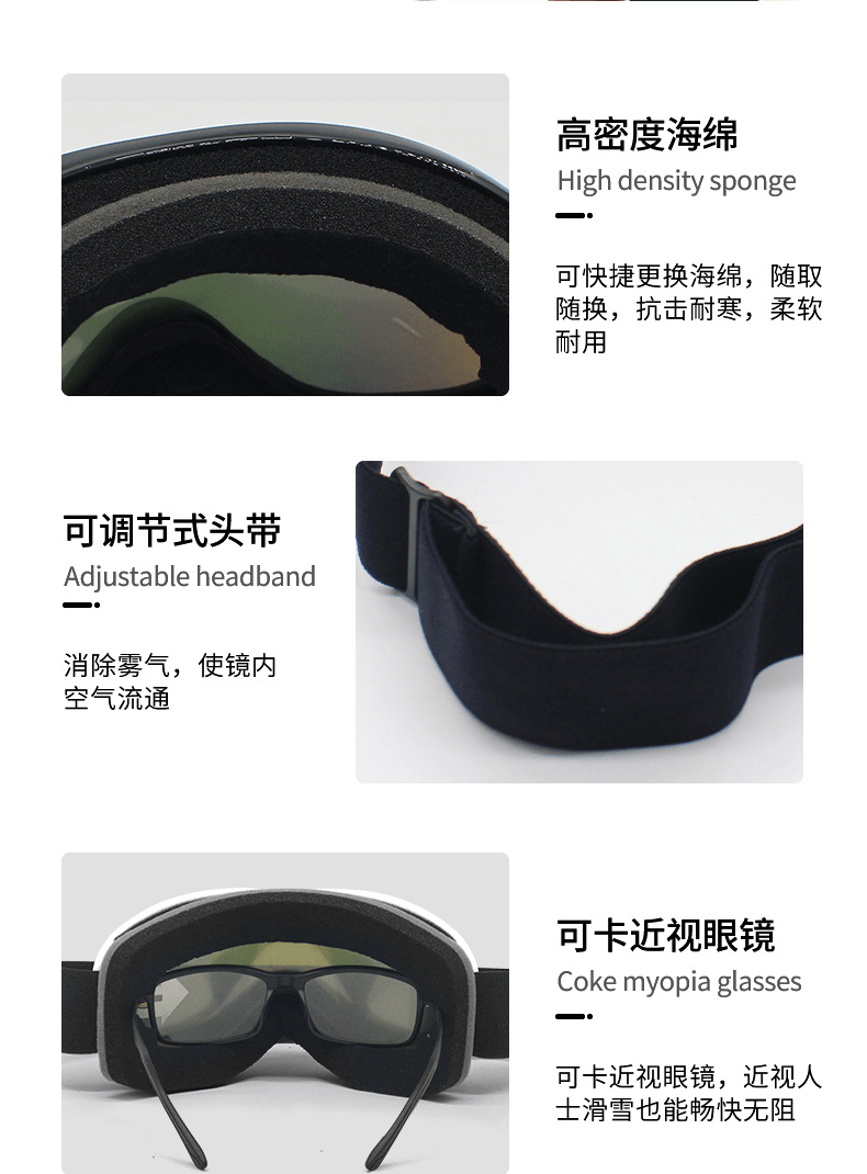 국경 간 스키 고글, 이중 안개 방지 스키 고글, 근시 전문 장비, 고화질 통기성 방풍 고글