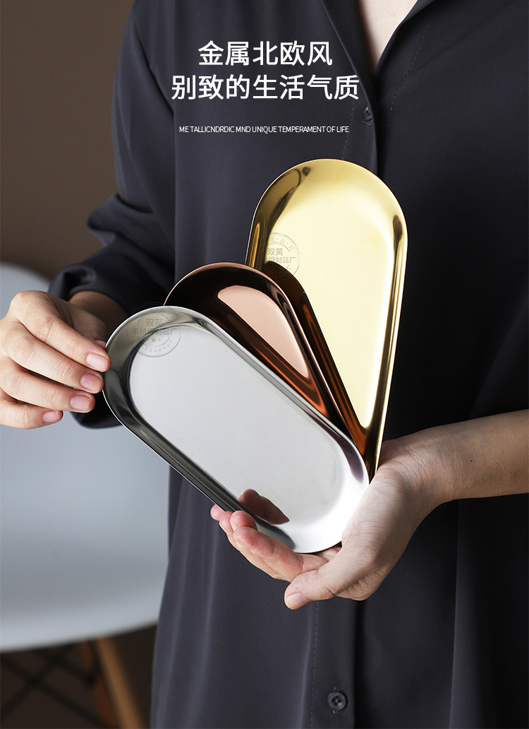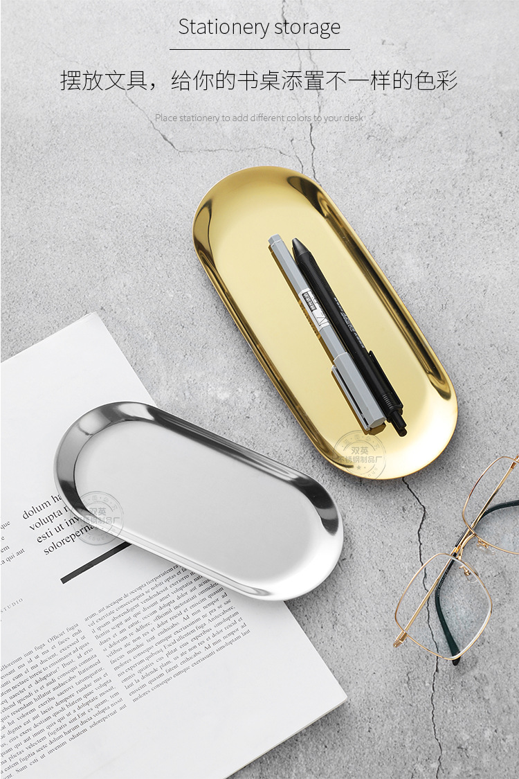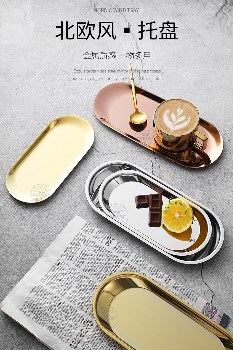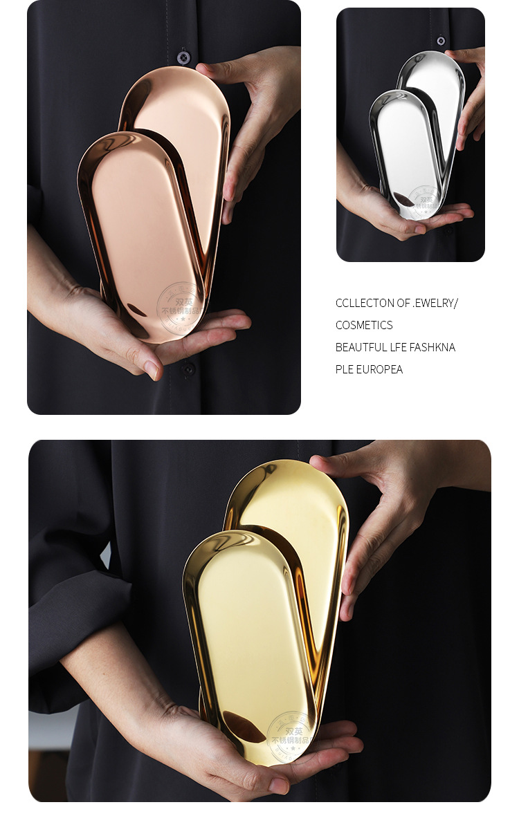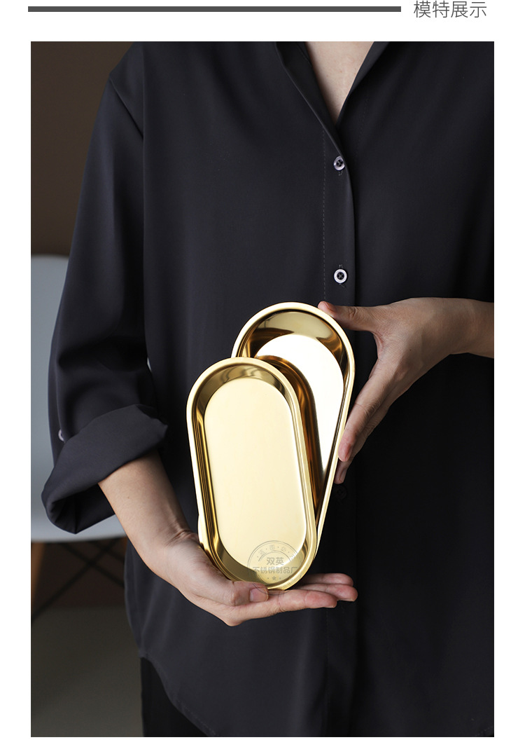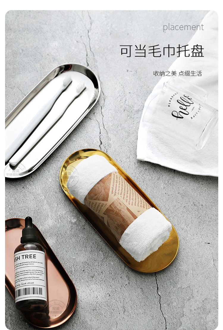 공장 직공급 유럽식 스테인리스 타월 트레이 북유럽식 호텔 트레이 타원형 수납 간식 트레이 배치