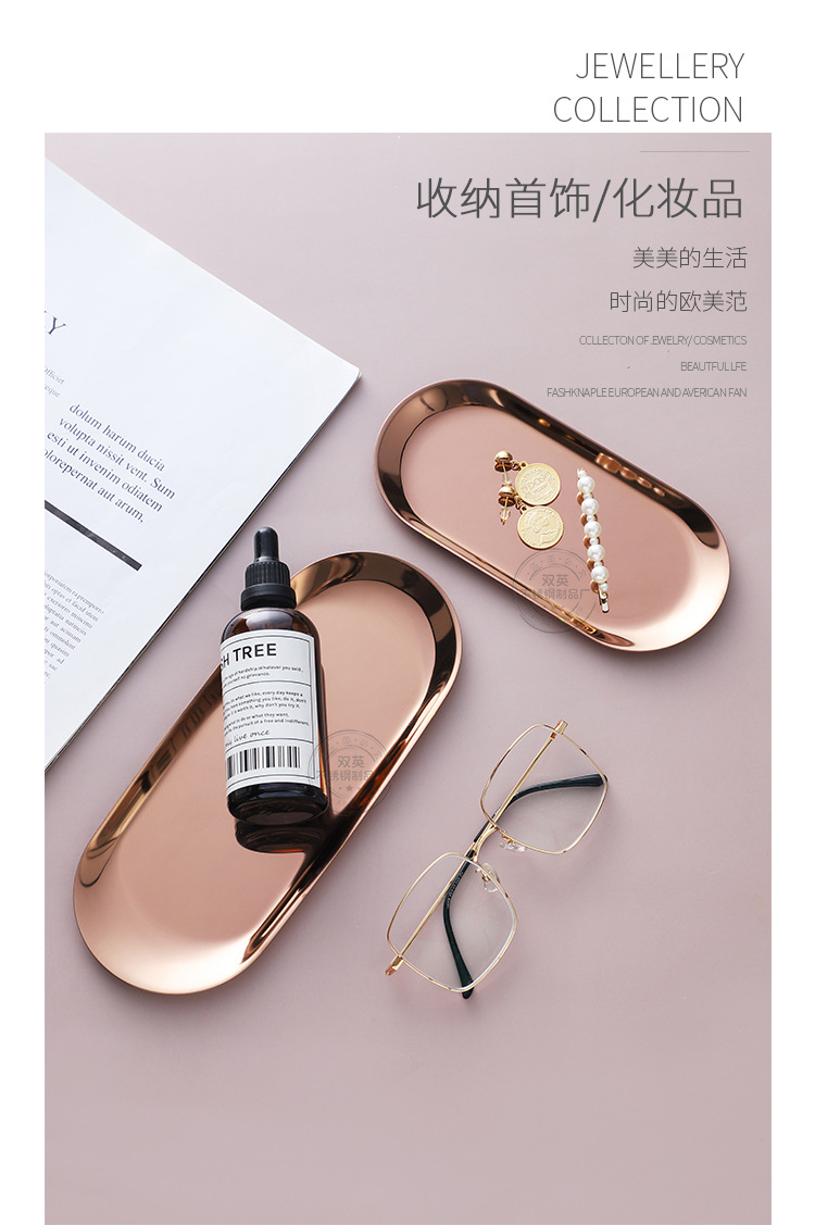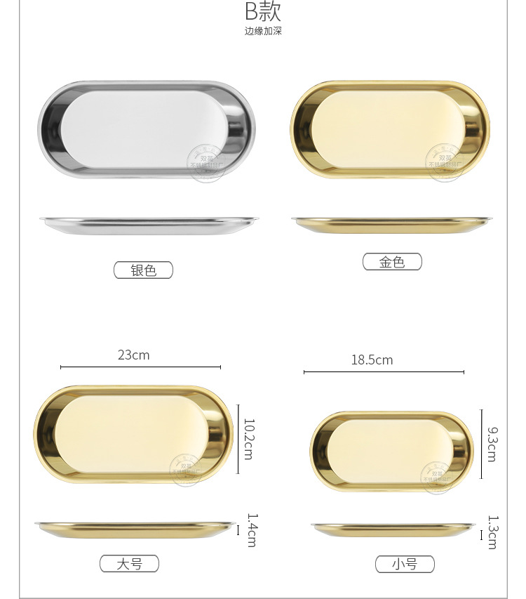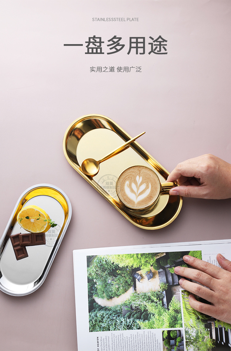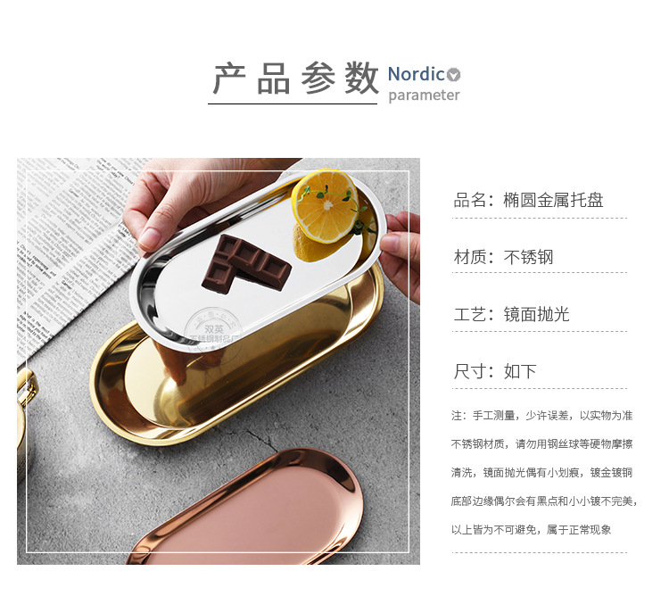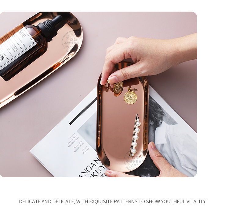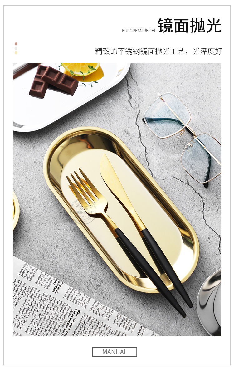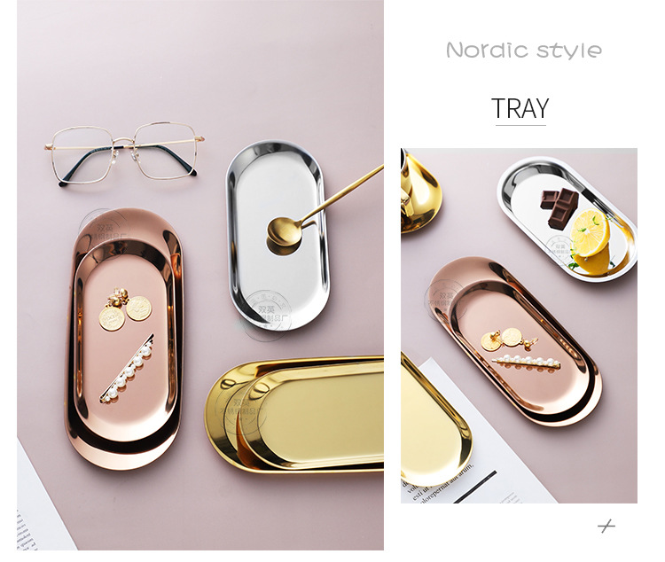 공장 직공급 유럽식 스테인리스 타월 트레이 북유럽식 호텔 트레이 타원형 수납 간식 트레이 배치