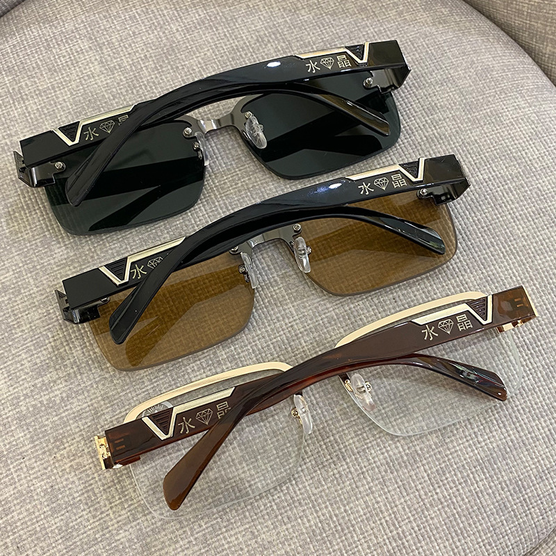 천공 된 프레임리스 동해 크리스탈 선글라스 플랫 유리 금속 크리스탈 안경 달리기 장후 스톨 신제품스토어 가기