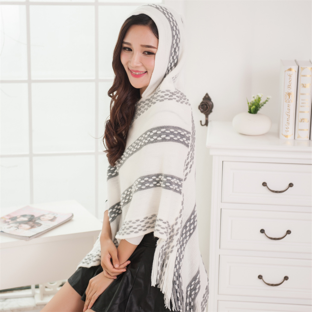 2023 새로운 가을과 겨울 니트 후드 케이프 목도리 단색 풀오버 케이프 스웨터 재고 대형 목도리 도매스토어 가기