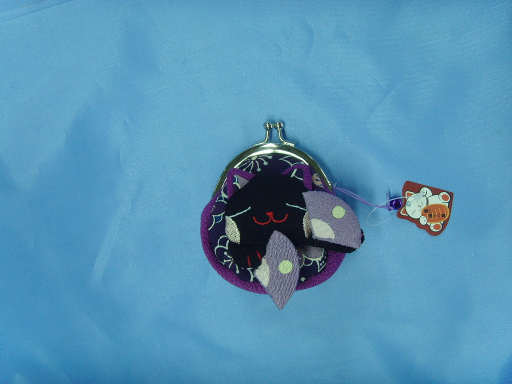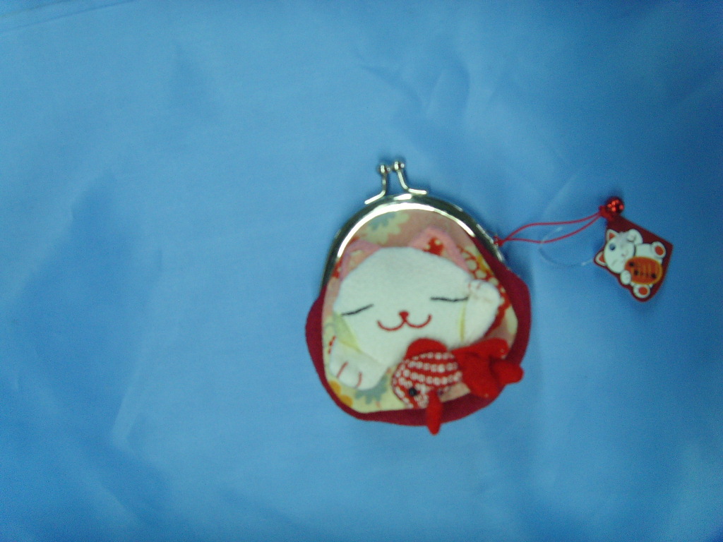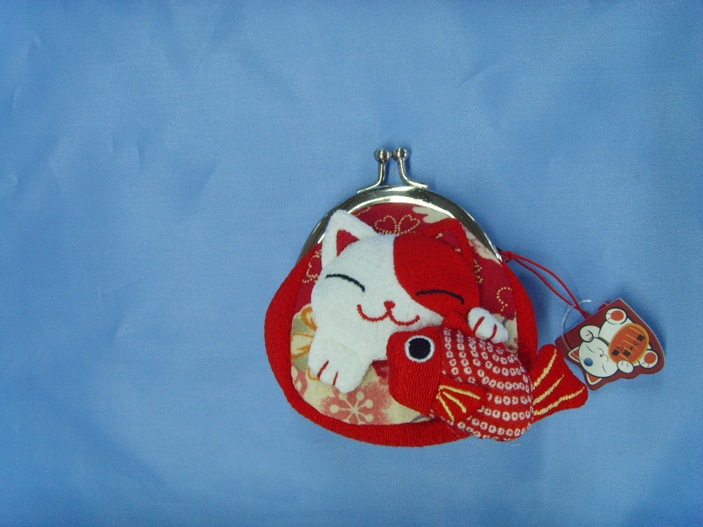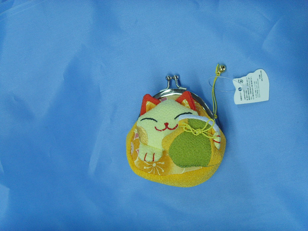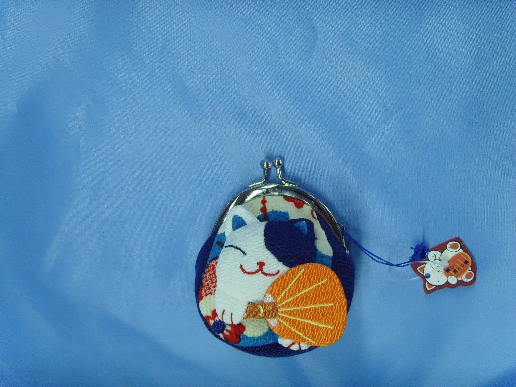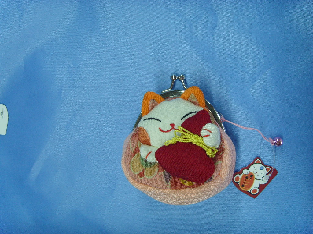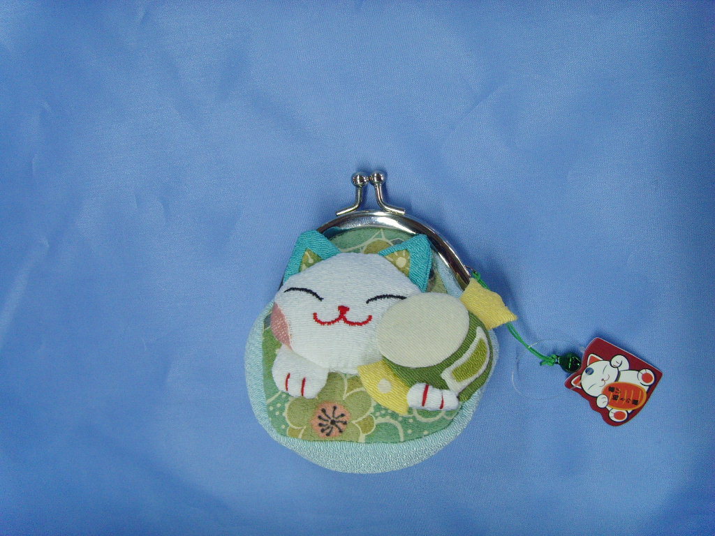 产品介绍: 日单の招喜屋零钱包-八宝抱宝物,和服用丝绸绉布材质,可用做零钱包,硬币包,首饰包等等,猫猫五官为电脑刺绣,表情生动可爱,绝对让MM爱不释