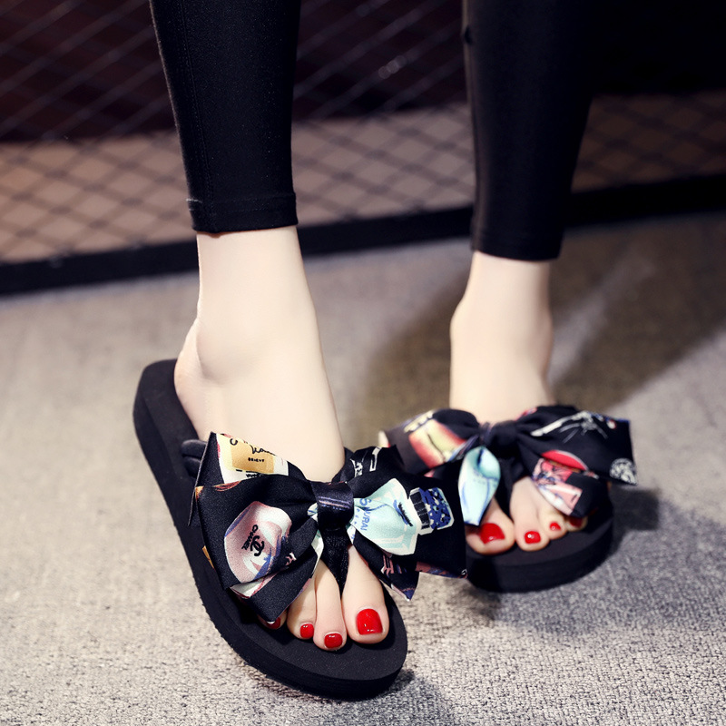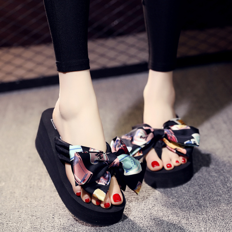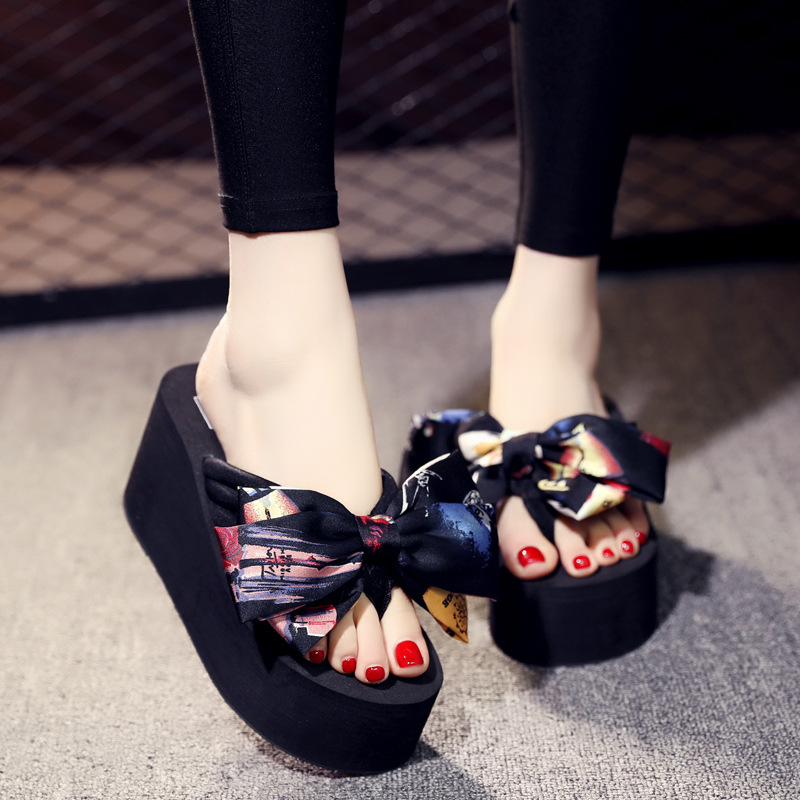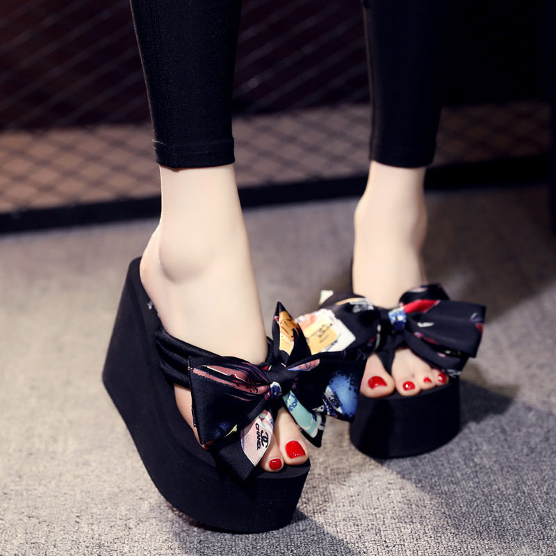 Sanjiao 2025 슬리퍼 여성 여름 패션 겉옷 11cm 슈퍼 하이힐 비치 슬리퍼 보우 플랫폼 플립 플롭스토어 가기