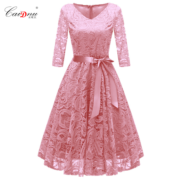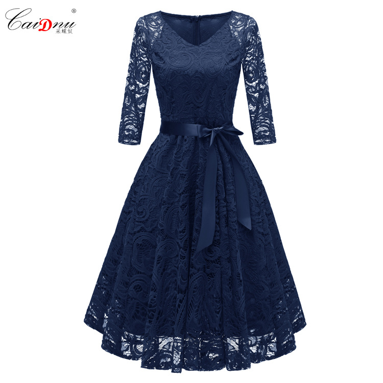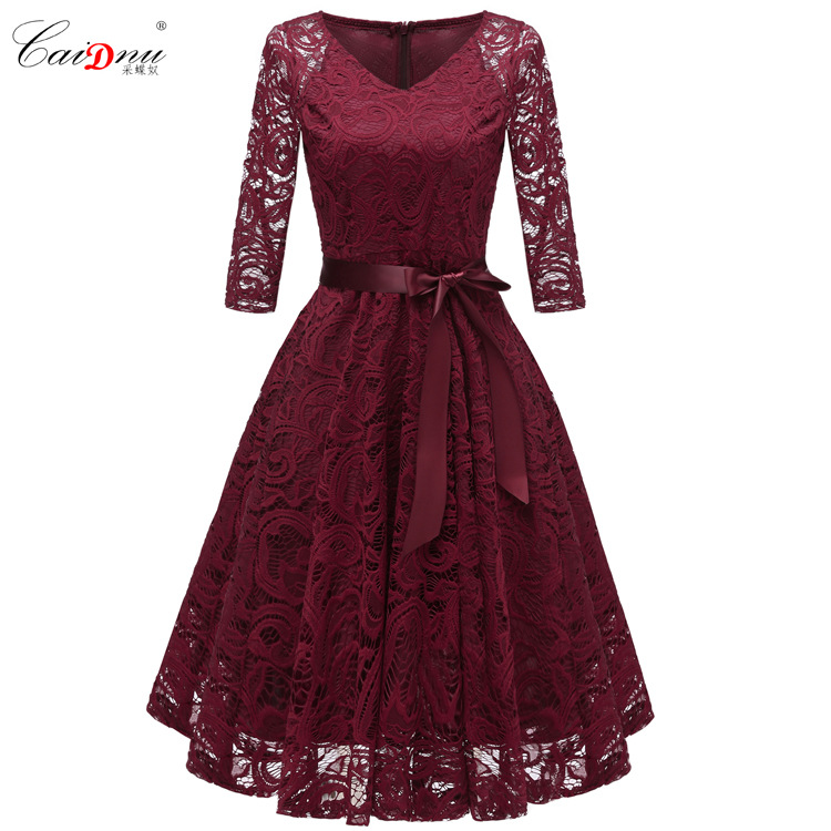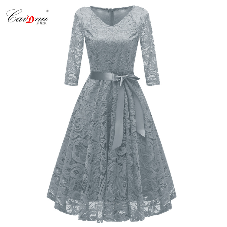 2024 봄 V 넥 레이스 업 섹시한 긴 소매 레이스 원피스 국경 여성 핫 세일 공장 스팟 도매