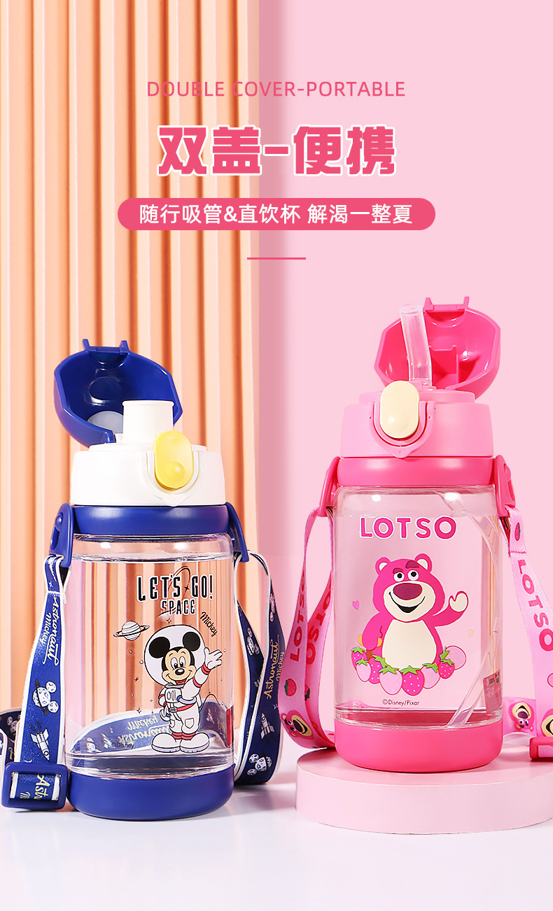 짚으로 디즈니 어린이 물컵 초등학교 어린이 유치원 휴대용 낙하 방지 아기 음료 컵 주전자 여름스토어 가기