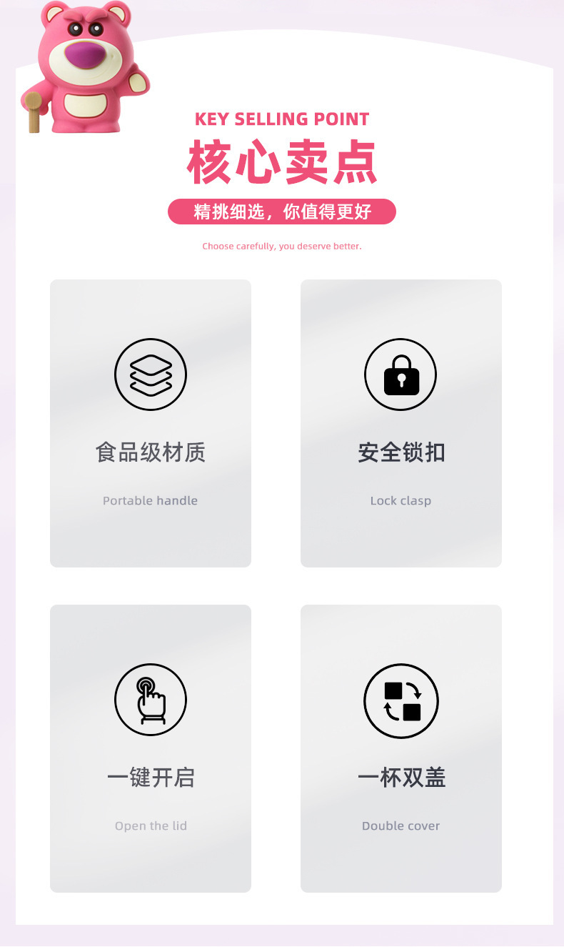 • 핑크 딸기 곰-520ML (스트레이트 음료 커버)