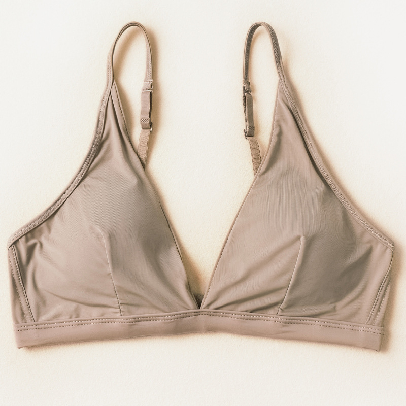 유럽과 미국 편안한 얇은 비 테 프랑스 삼각형 광택 브래지어 큰 가슴 작은 비키니 여성 속옷스토어 가기