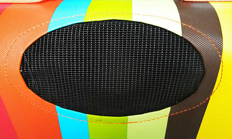 背包正面跟2个侧面都有透气网格,网格结实耐抓。