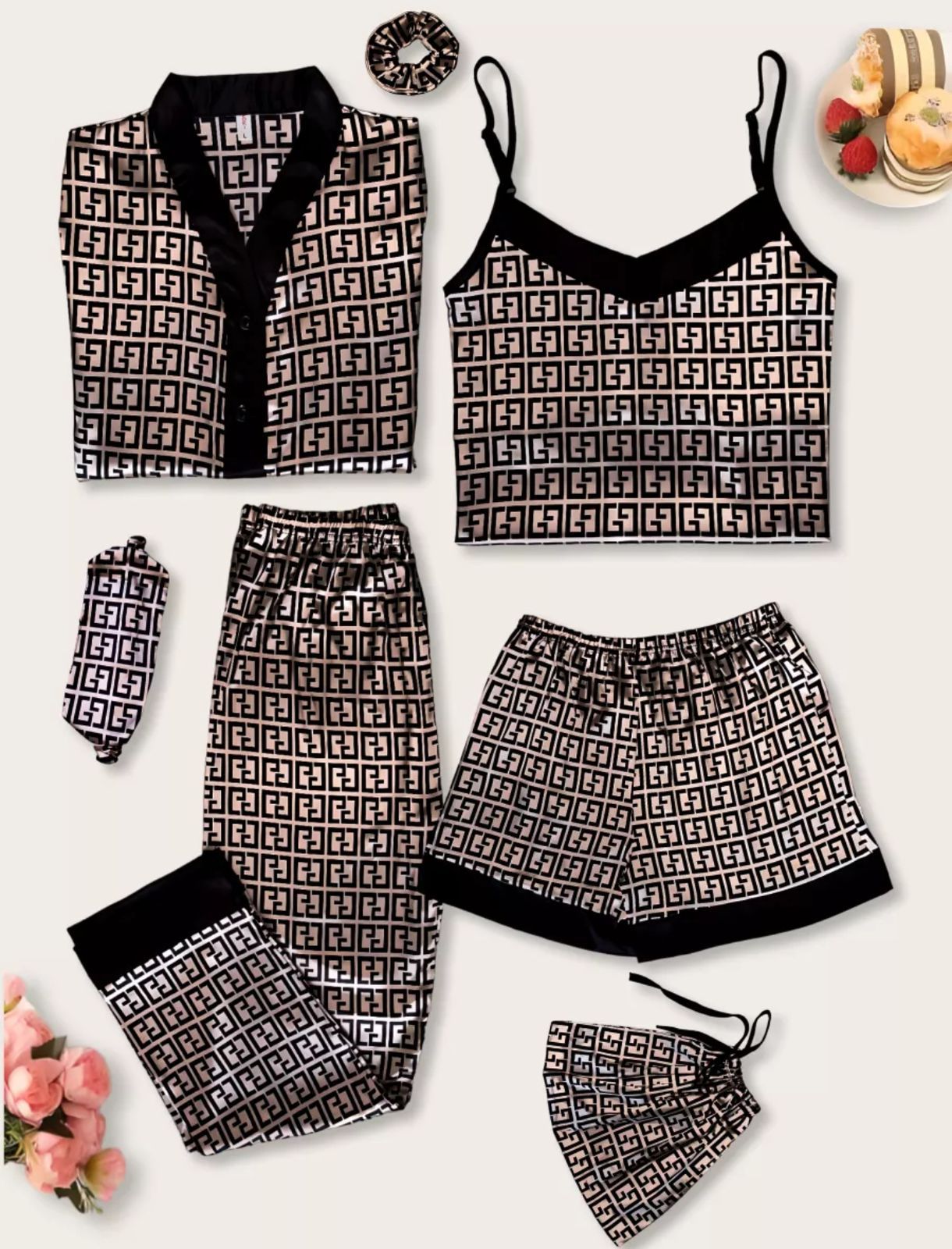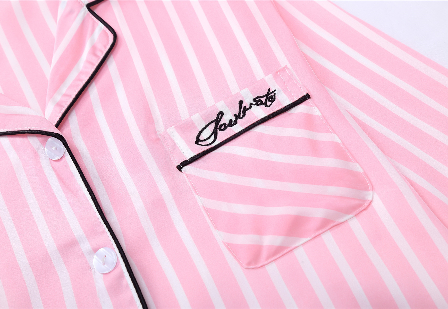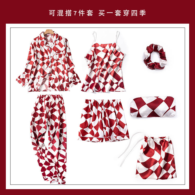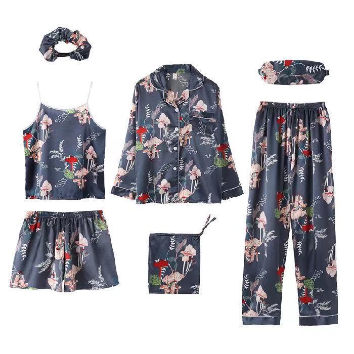 잠옷 여자의 봄 가을 여름 사계절 7 종 세트 긴팔 반바지 슬링 스트라이프 실크 가정 옷 세트 잠옷 대외 무역