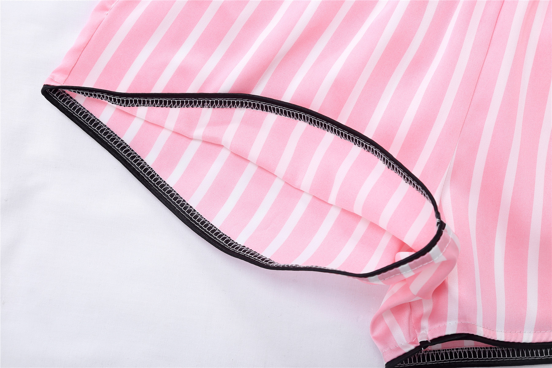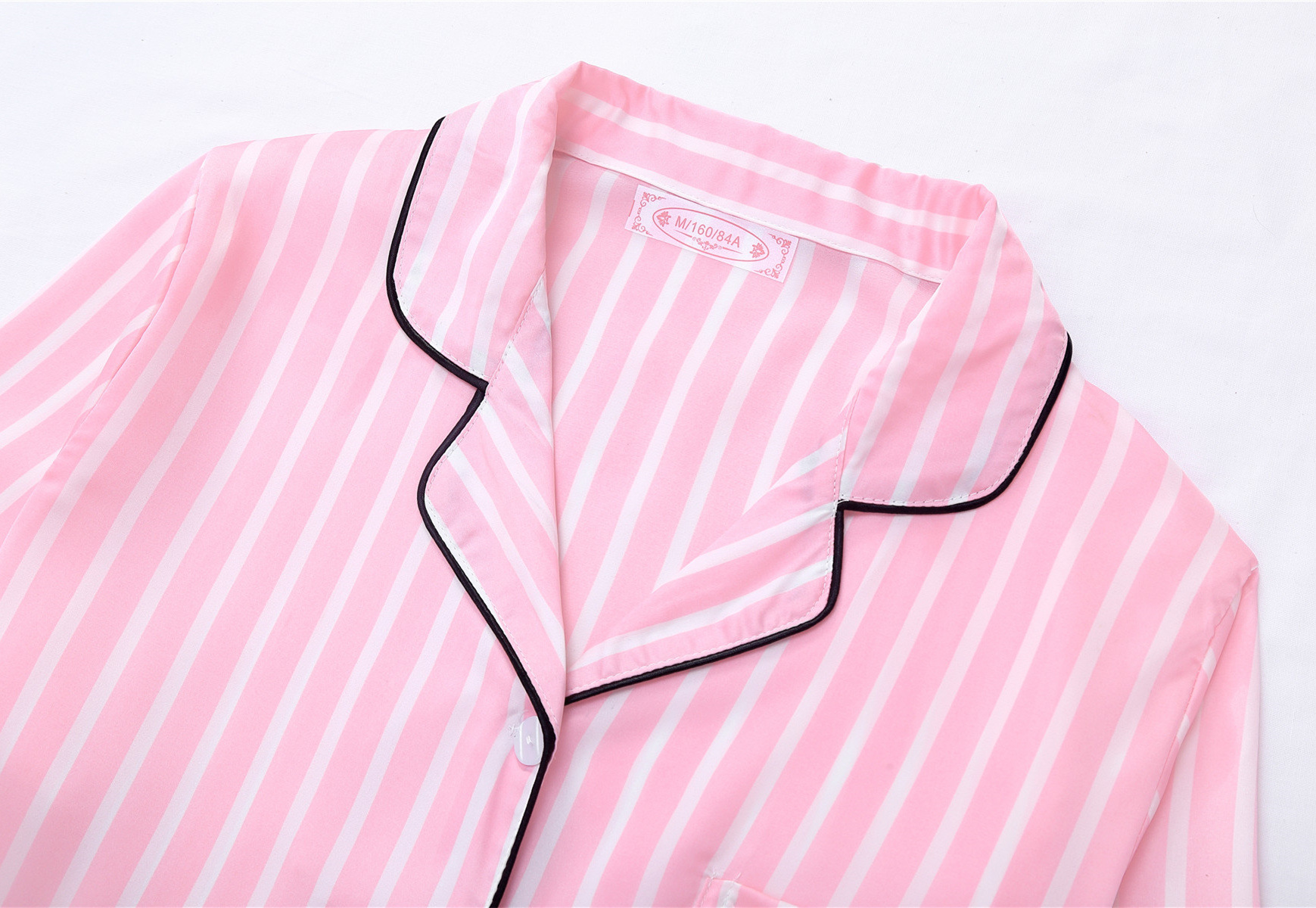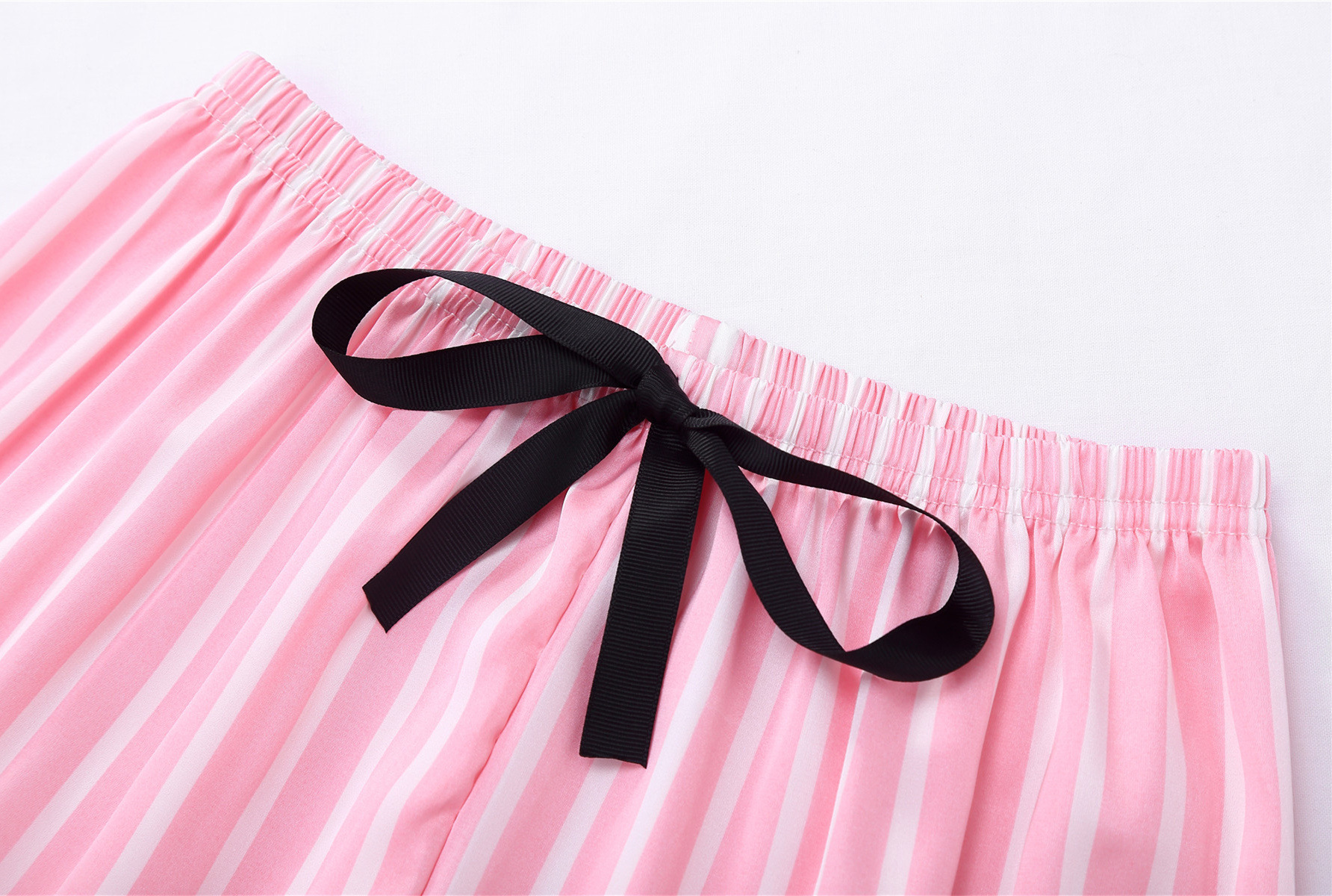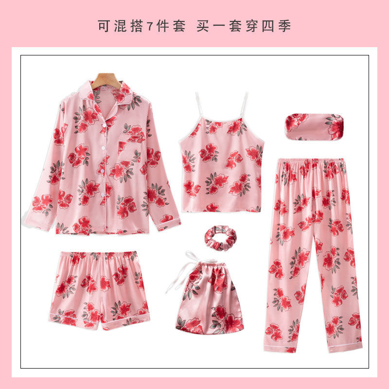 잠옷 여자의 봄 가을 여름 사계절 7 종 세트 긴팔 반바지 슬링 스트라이프 실크 가정 옷 세트 잠옷 대외 무역스토어 가기