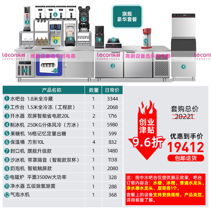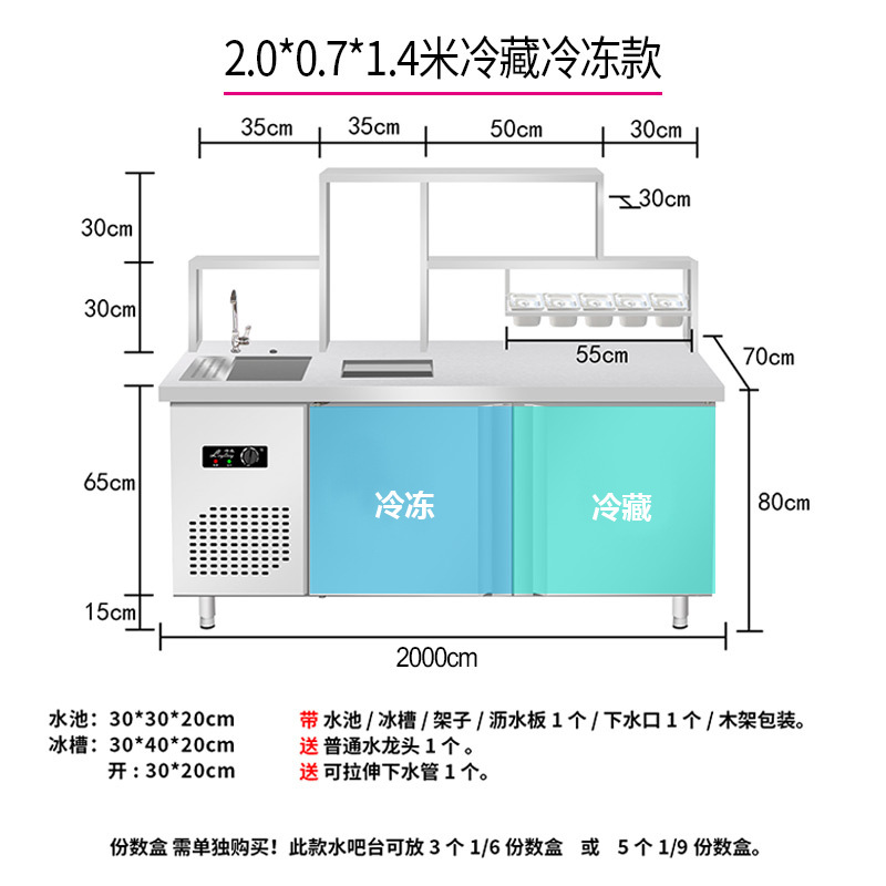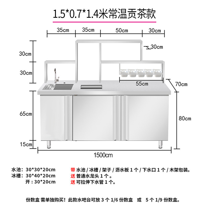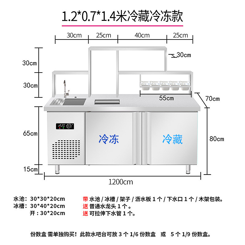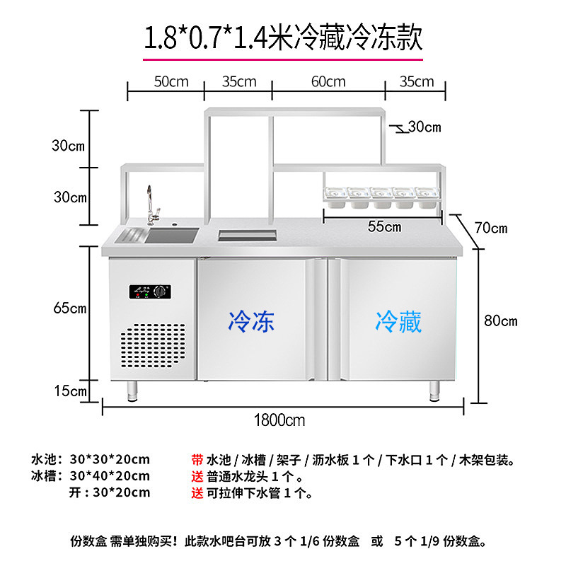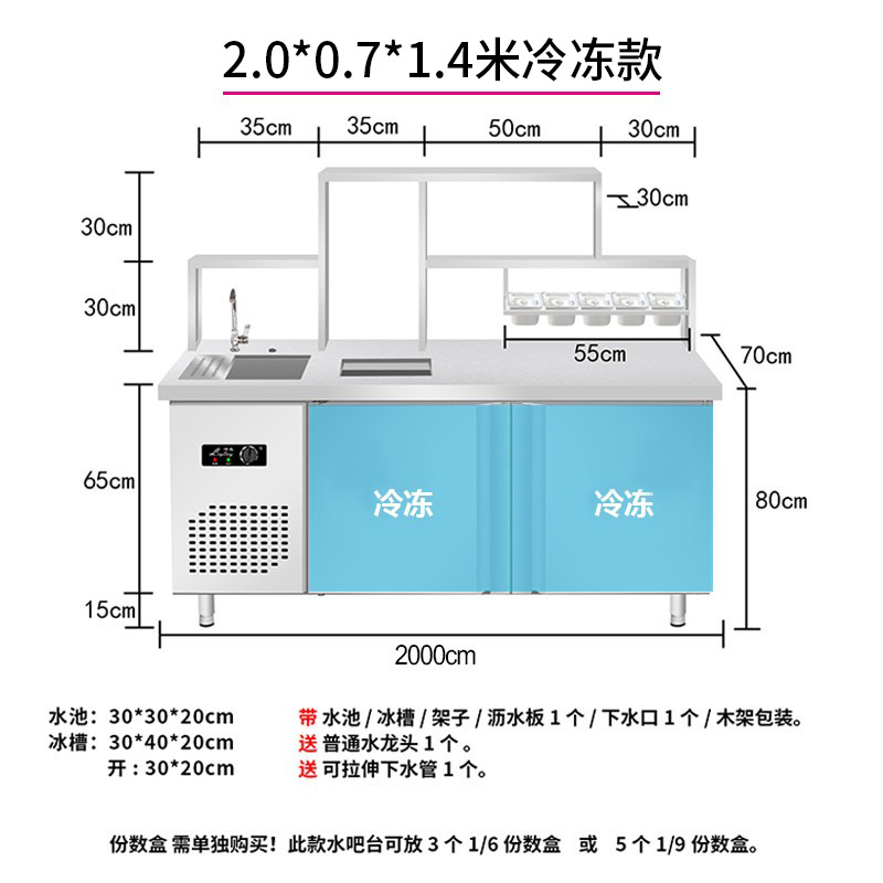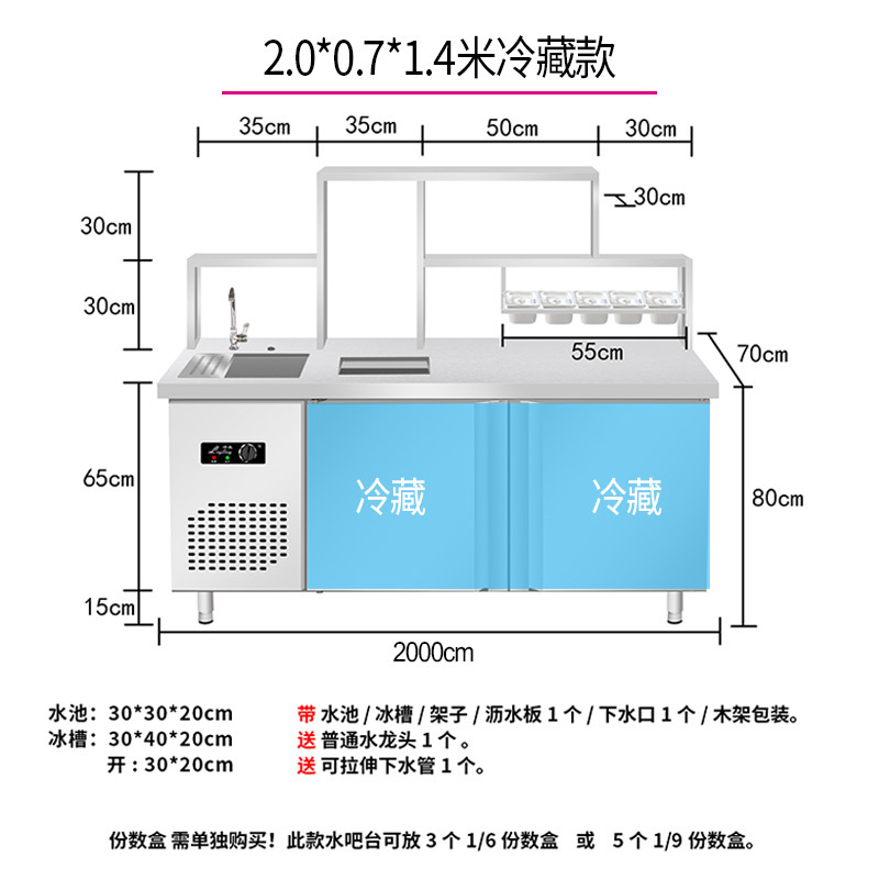Lechuang 냉동고 상업용 워터 바 스테인레스 스틸 우유 차 운영자 냉동 작업대 공물 차 테이블 우유 차 가게 장비스토어 가기