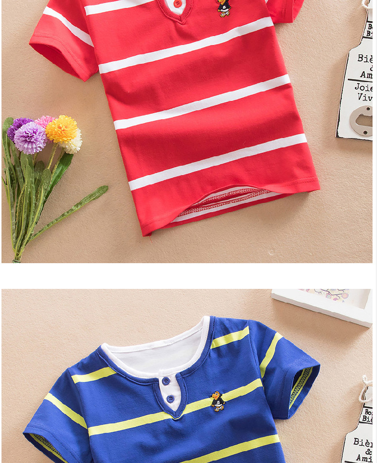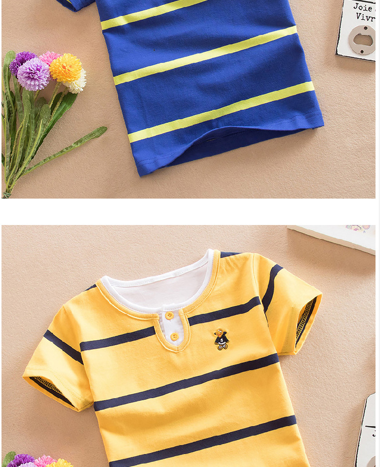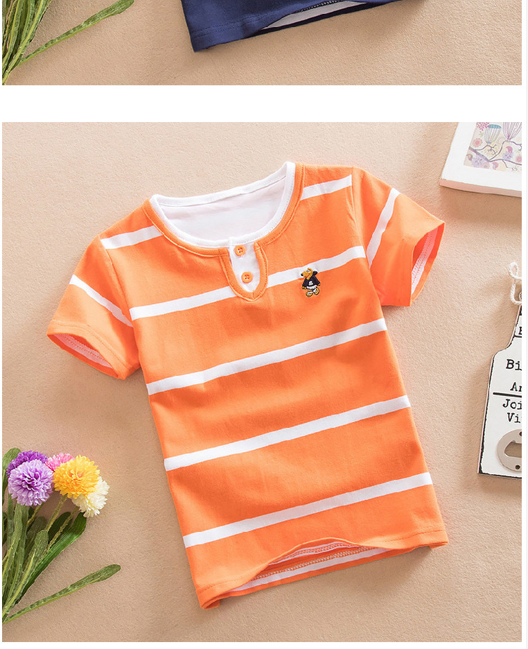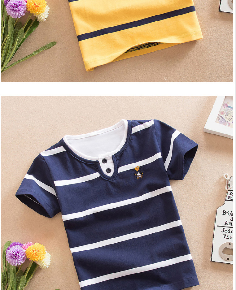 어린이 봄과 여름 새로운 반팔 스트라이프 티셔츠 어린이 면 크루넥 탑 베이스 셔츠 아동복 티셔츠 반팔스토어 가기