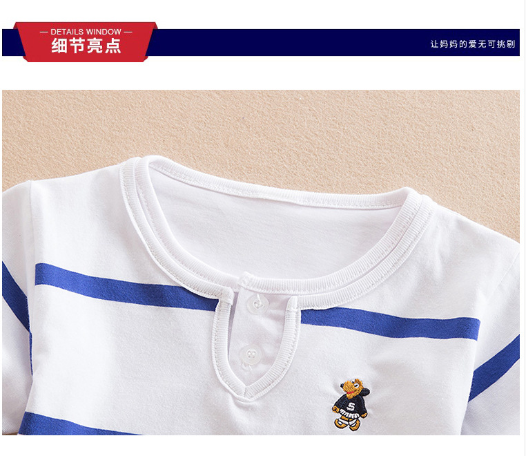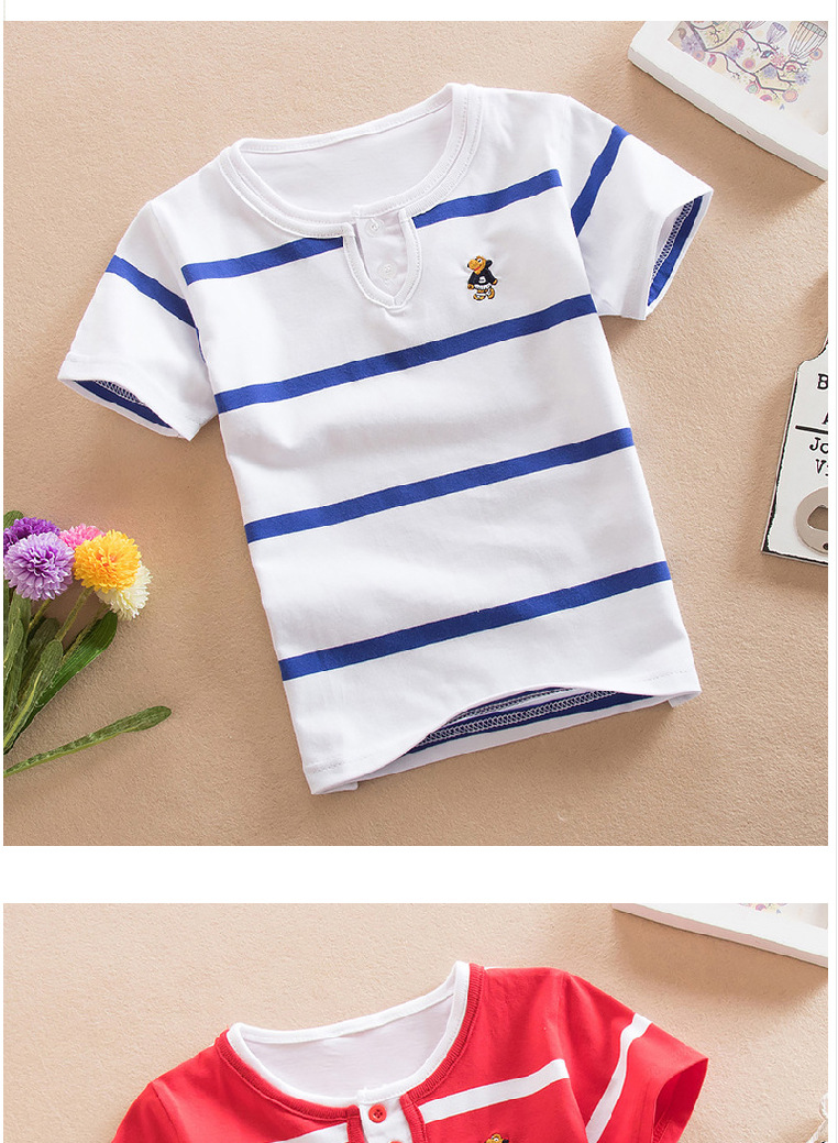 어린이 봄과 여름 새로운 반팔 스트라이프 티셔츠 어린이 면 크루넥 탑 베이스 셔츠 아동복 티셔츠 반팔