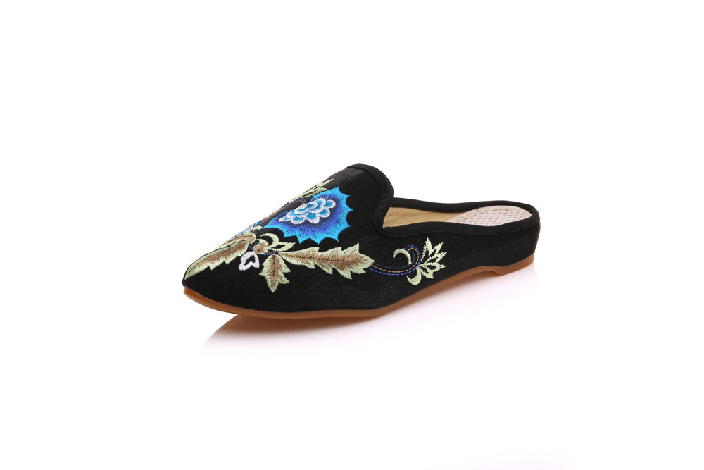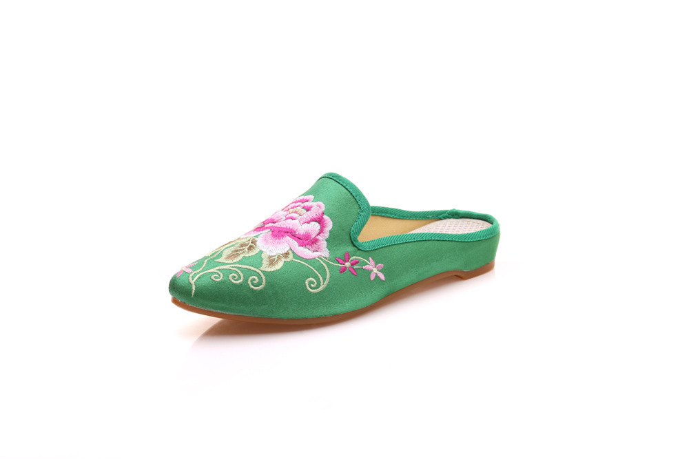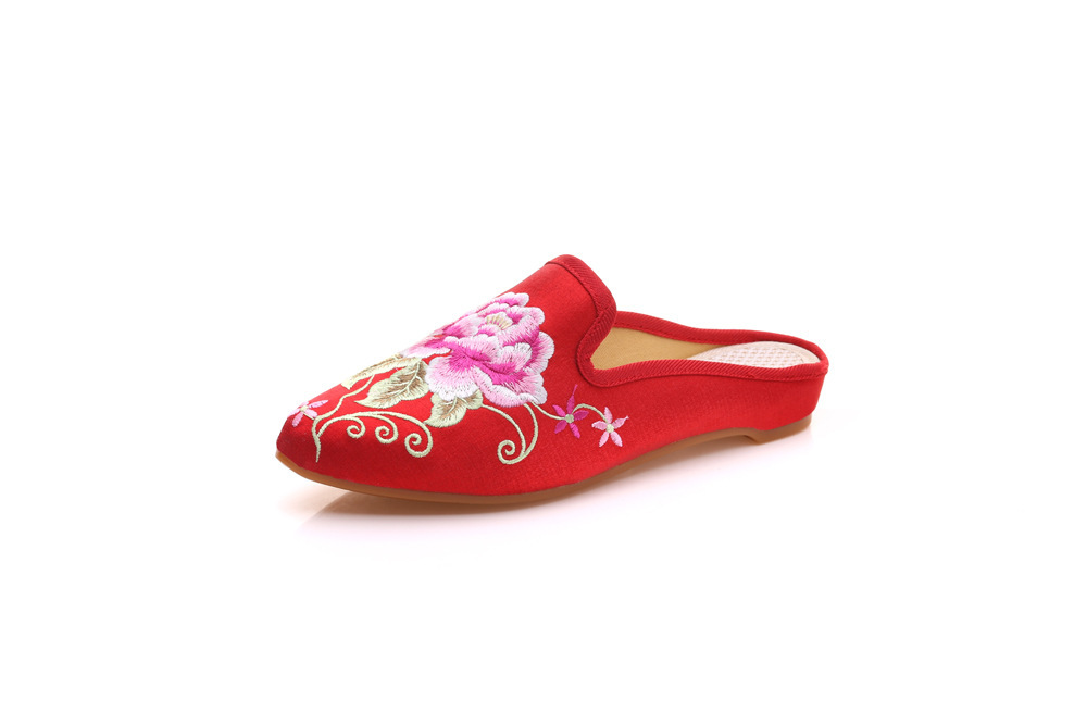 슬리퍼 밝은 실크 천 치파오 뾰족한 뮐러 겉옷 Baotou 드래그 패션 에스닉 여성 신발스토어 가기