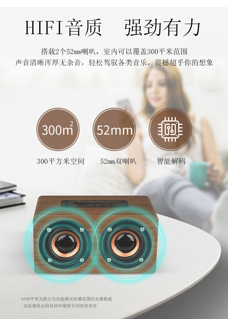 插卡蓝牙音箱 W5木质音箱 W5 木质 充电式 无线音响