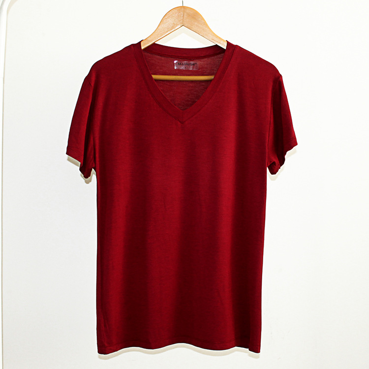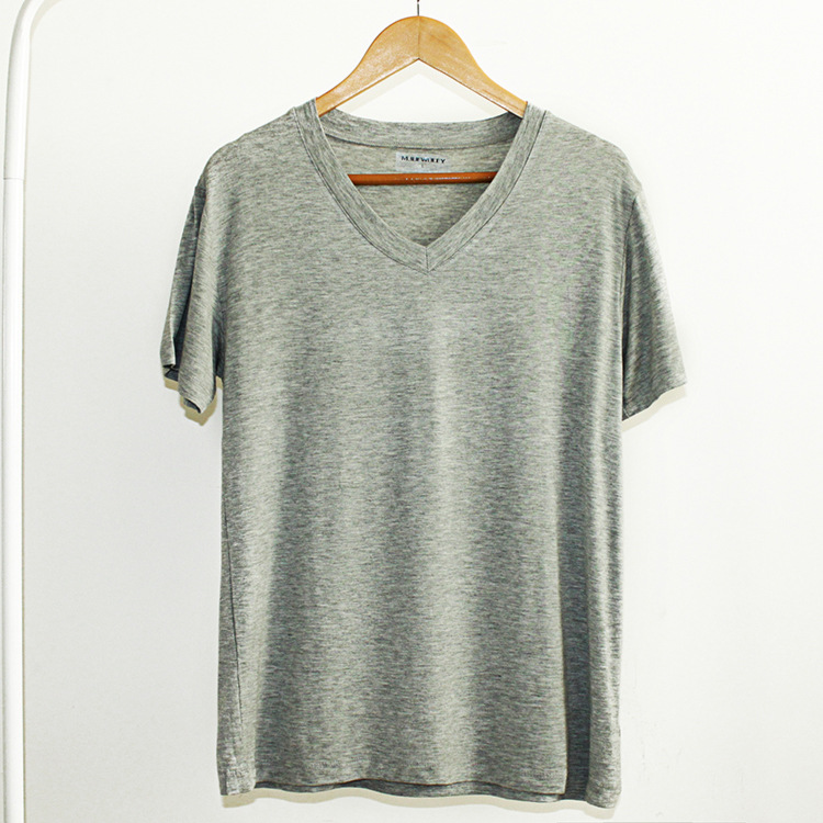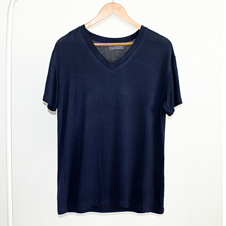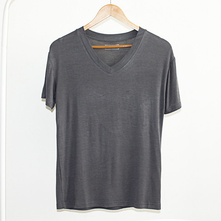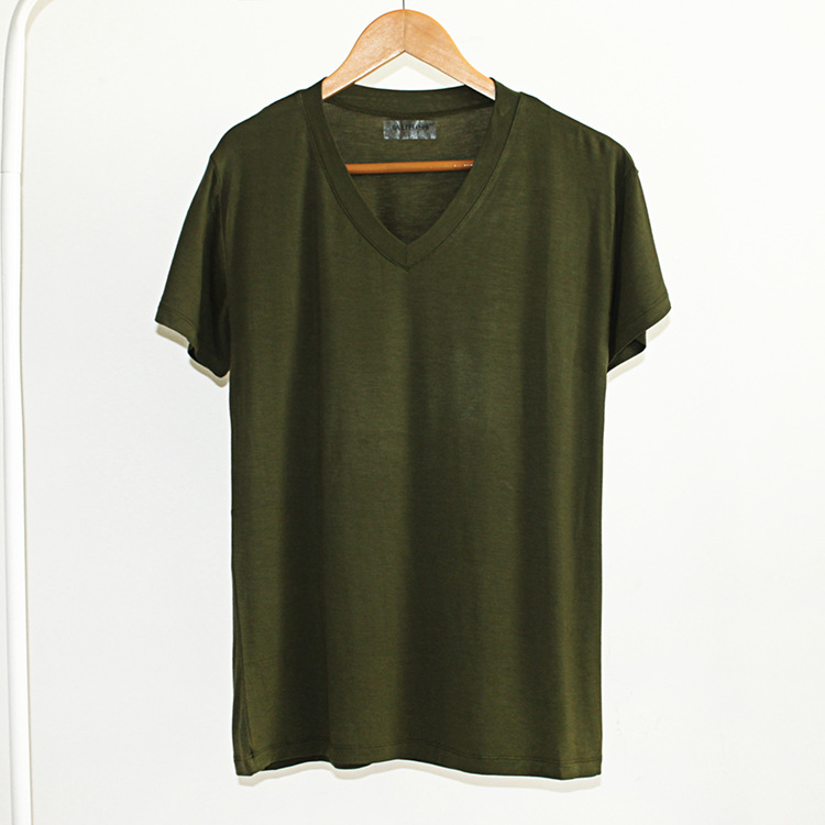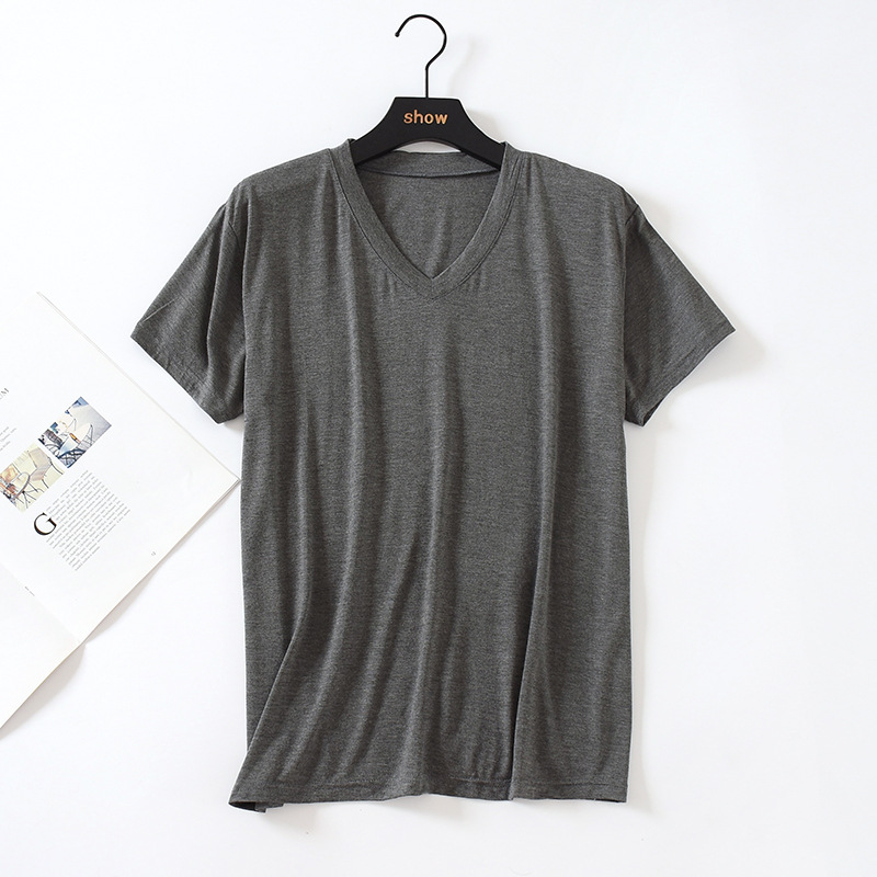 남자의 모달 티셔츠 여름 V 칼라 반팔 얇은 캐주얼 단색 바닥 셔츠 재킷 느슨한 버전의 머리카락