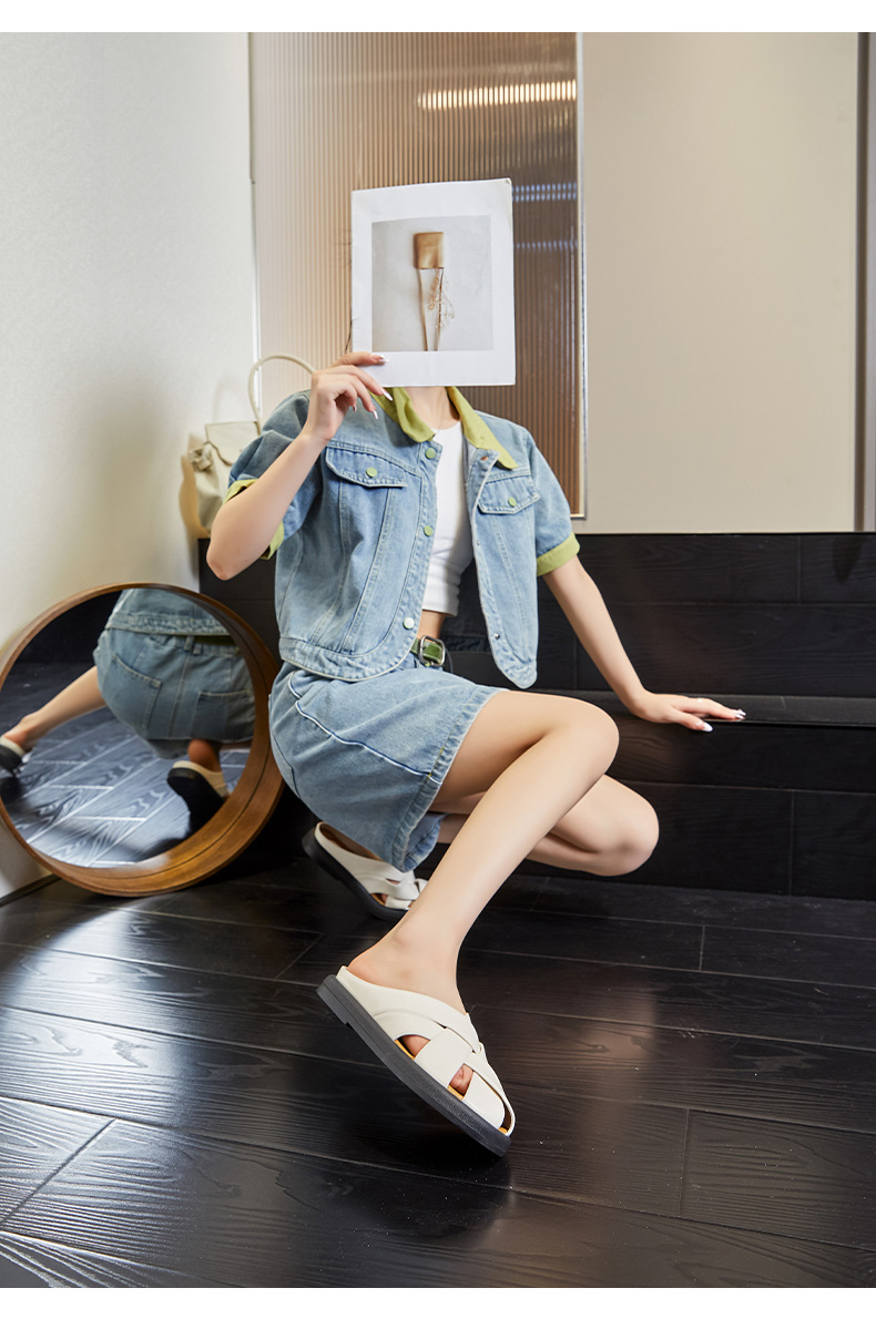 여성을위한 새로운 스타일 Baotou 슬리퍼 여름 캐주얼 플랫 비치 하프 슬리퍼 여성 패션 다목적 샌들 겉옷 여성 신발스토어 가기