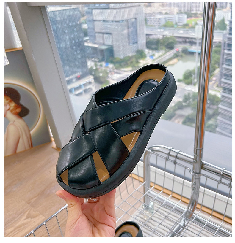 여성을위한 새로운 스타일 Baotou 슬리퍼 여름 캐주얼 플랫 비치 하프 슬리퍼 여성 패션 다목적 샌들 겉옷 여성 신발