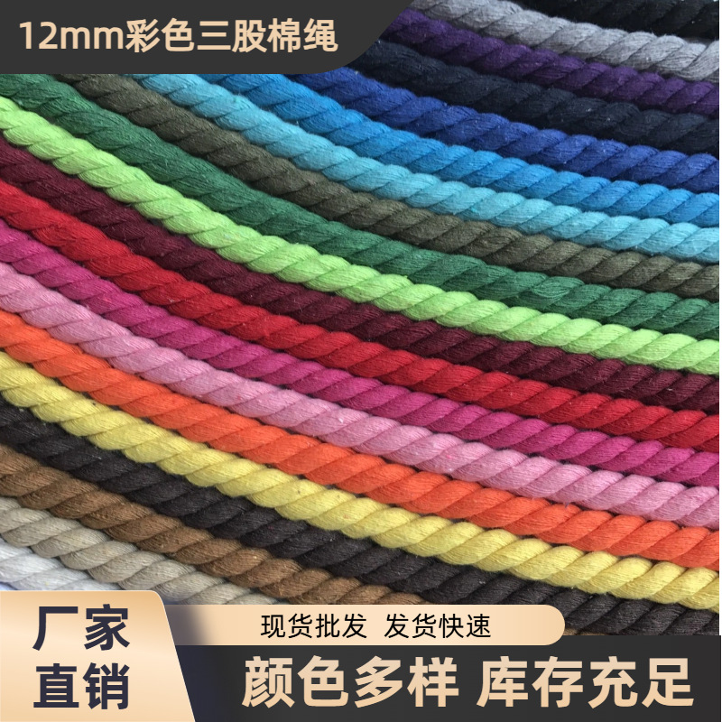 12mm 3 가닥 컬러 코튼 로프 수제 diy 로프 트위스트 장식 로프 졸라 매는 끈 바인딩 로프스토어 가기