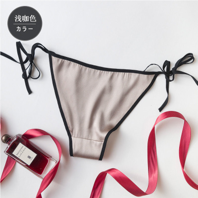 탱지 실크 속옷 여자의 유혹 뽕나무 실크 성인 섹시한 끈 머리 레이스 업 낮은 허리 삼각형 반바지
