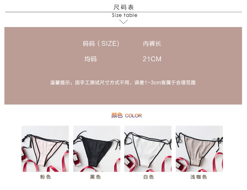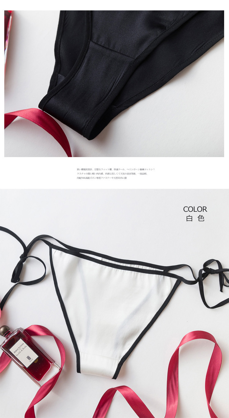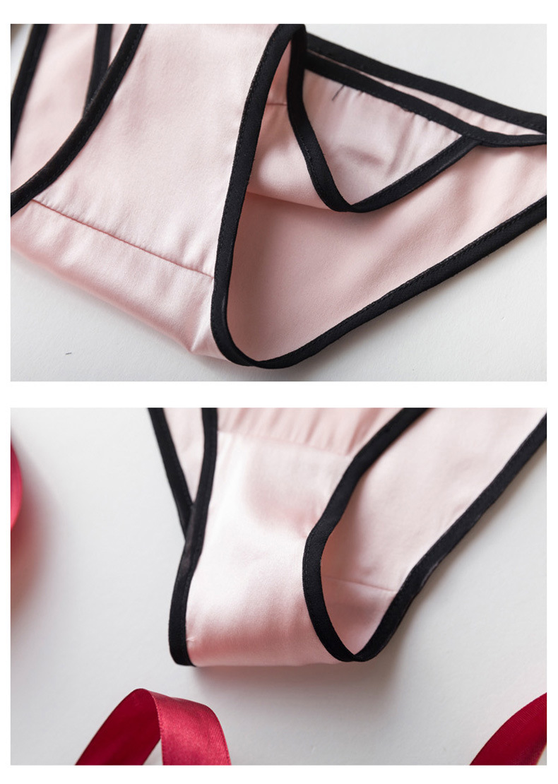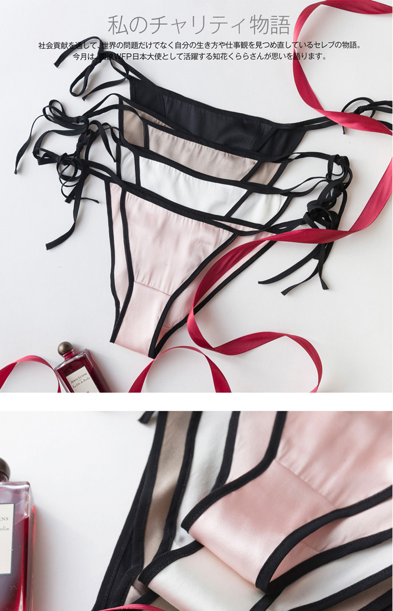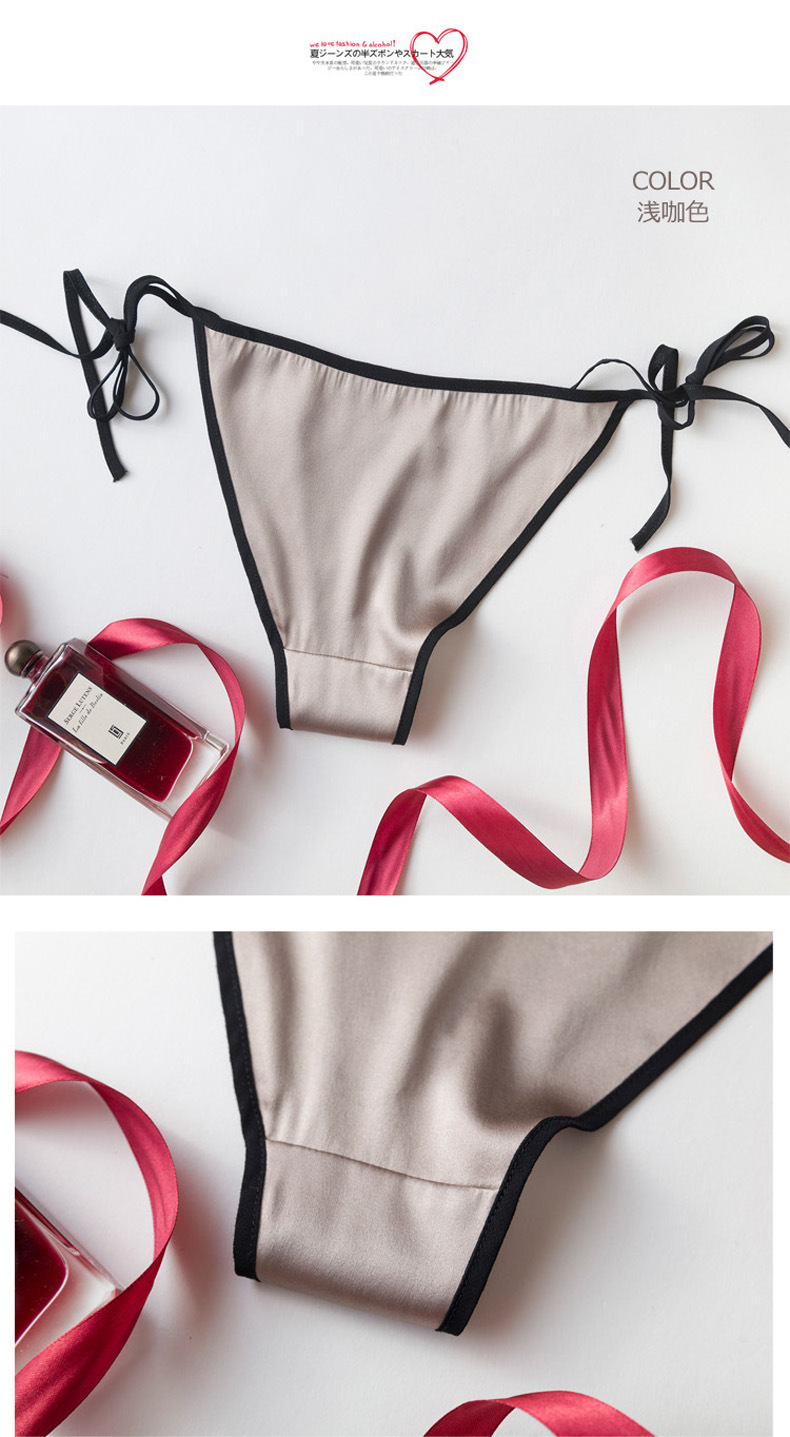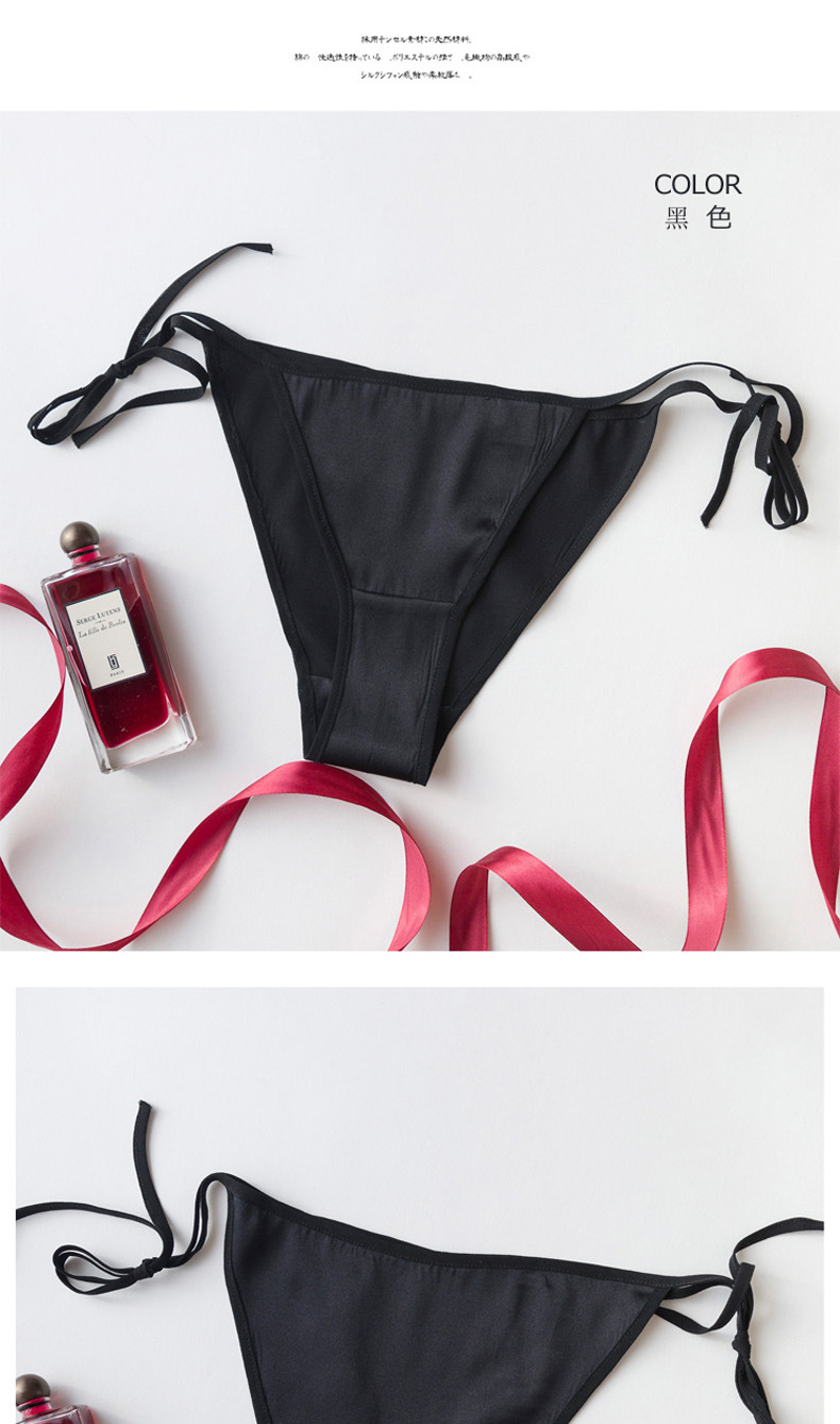 탱지 실크 속옷 여자의 유혹 뽕나무 실크 성인 섹시한 끈 머리 레이스 업 낮은 허리 삼각형 반바지스토어 가기