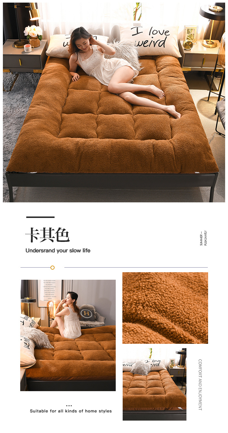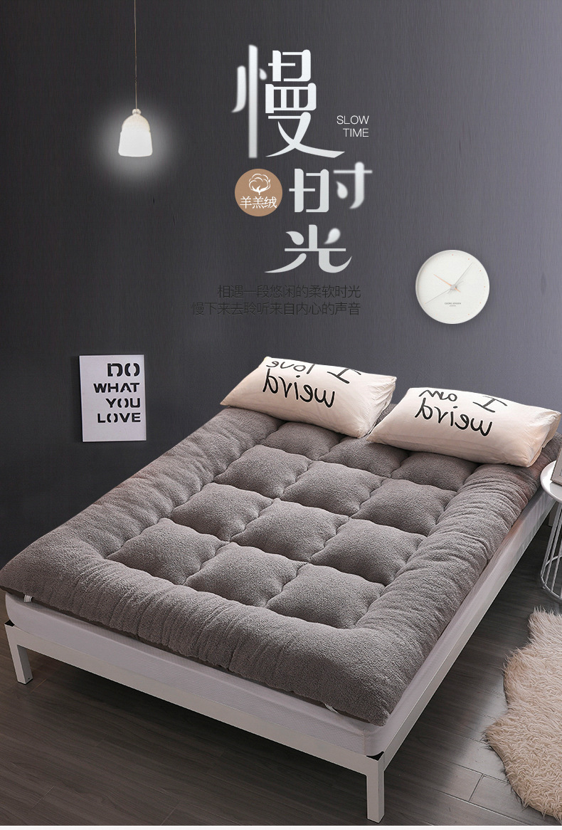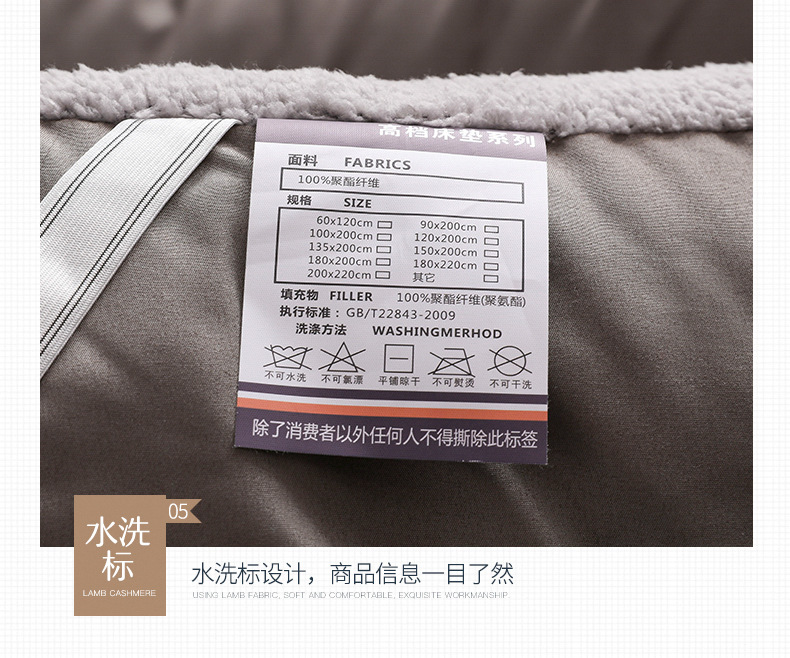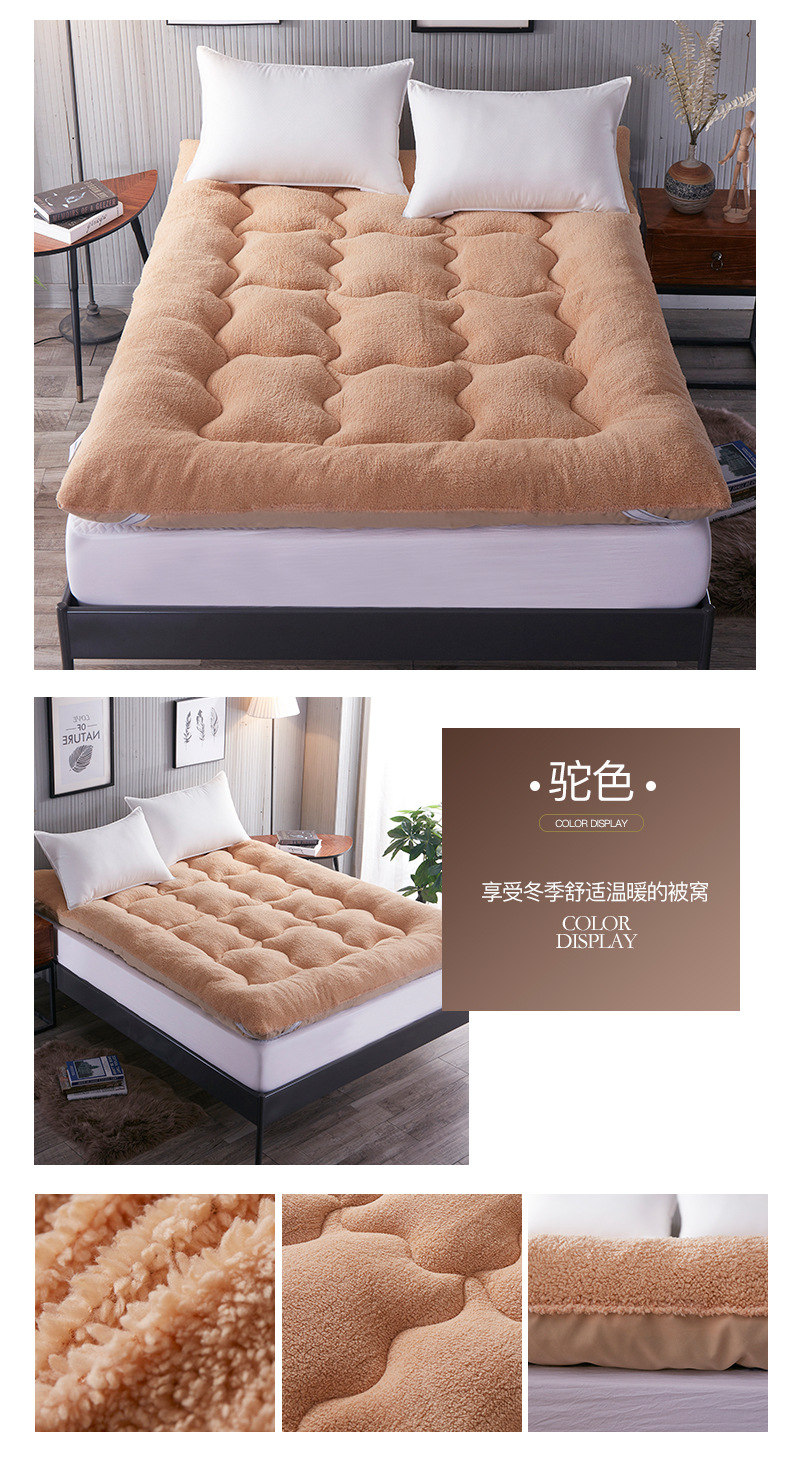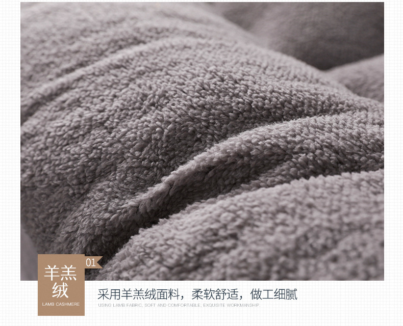 一面羊羔绒绒(冬天使用)一面磨毛面料(四季适用),羽丝绒填充,蓬松保暖,柔软舒适。厚度蓬松状态下约10cm。