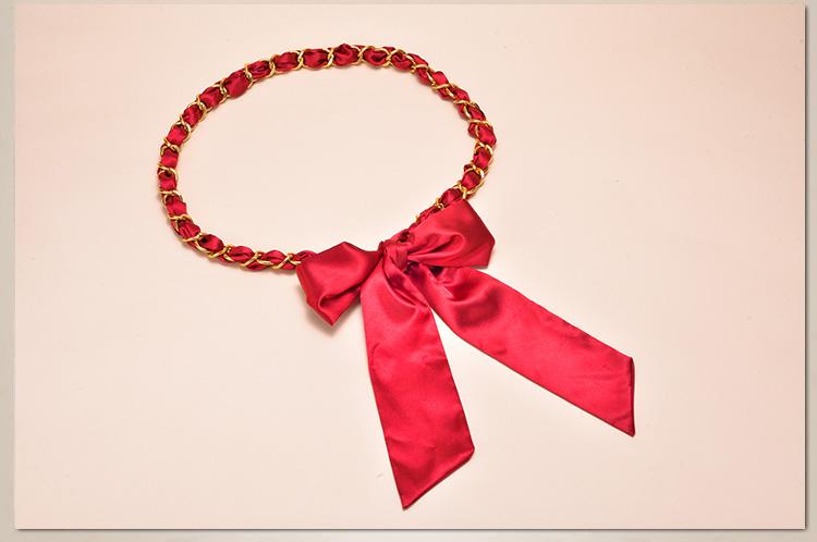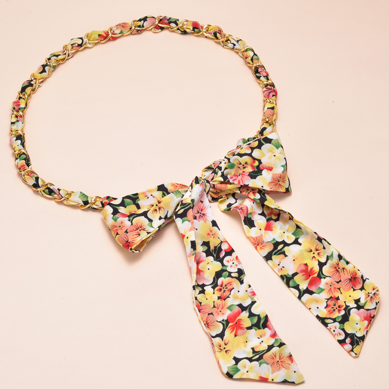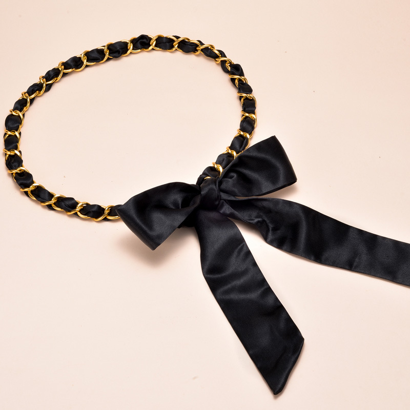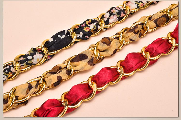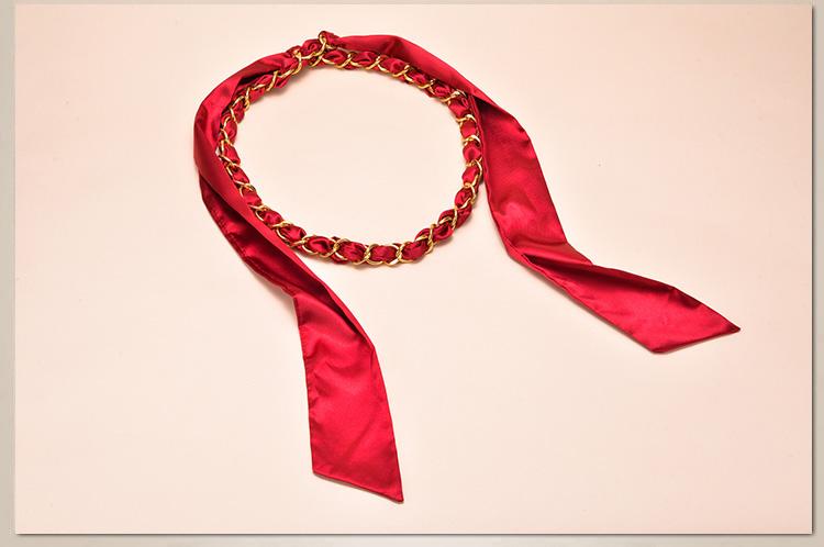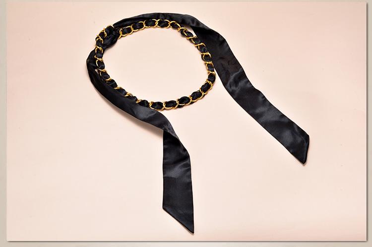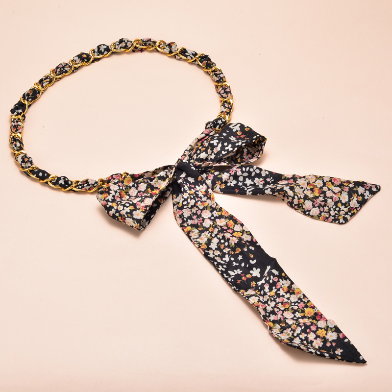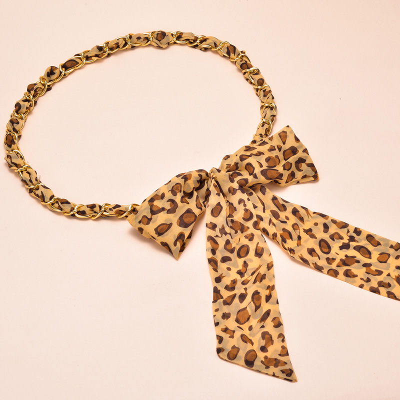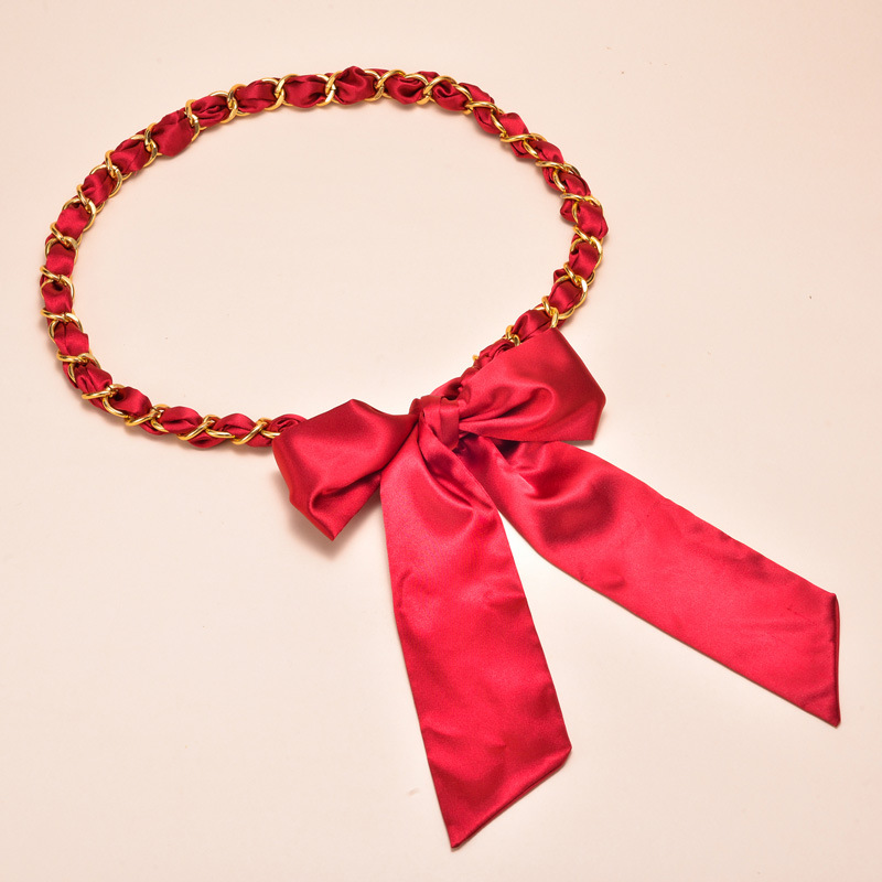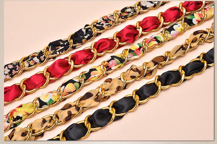 새로운 모든 매치 실크 스카프 금속 체인 벨트 여성용 달콤한 매듭 허리 체인 여성용 스커트 바지 장식 벨트