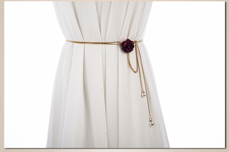 여성용 한국식 모든 매치 메탈 체인 슬림 허리 체인 스커트 꽃 장식 좁은 벨트 여성용 스위트 벨트