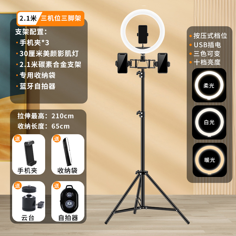 앵커 야외 셀프 타이머 바닥 삼각대의 휴대 전화 라이브 방송 브래킷 필 라이트 멀티 머신 풀 세트