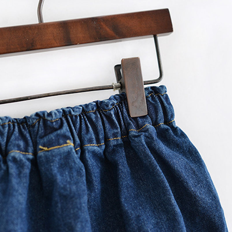 INS 한국 스타일 남아 데님 반바지 봄 여름 유아용 레이스업 팬츠 여아용 러플 빅 PP 팬츠